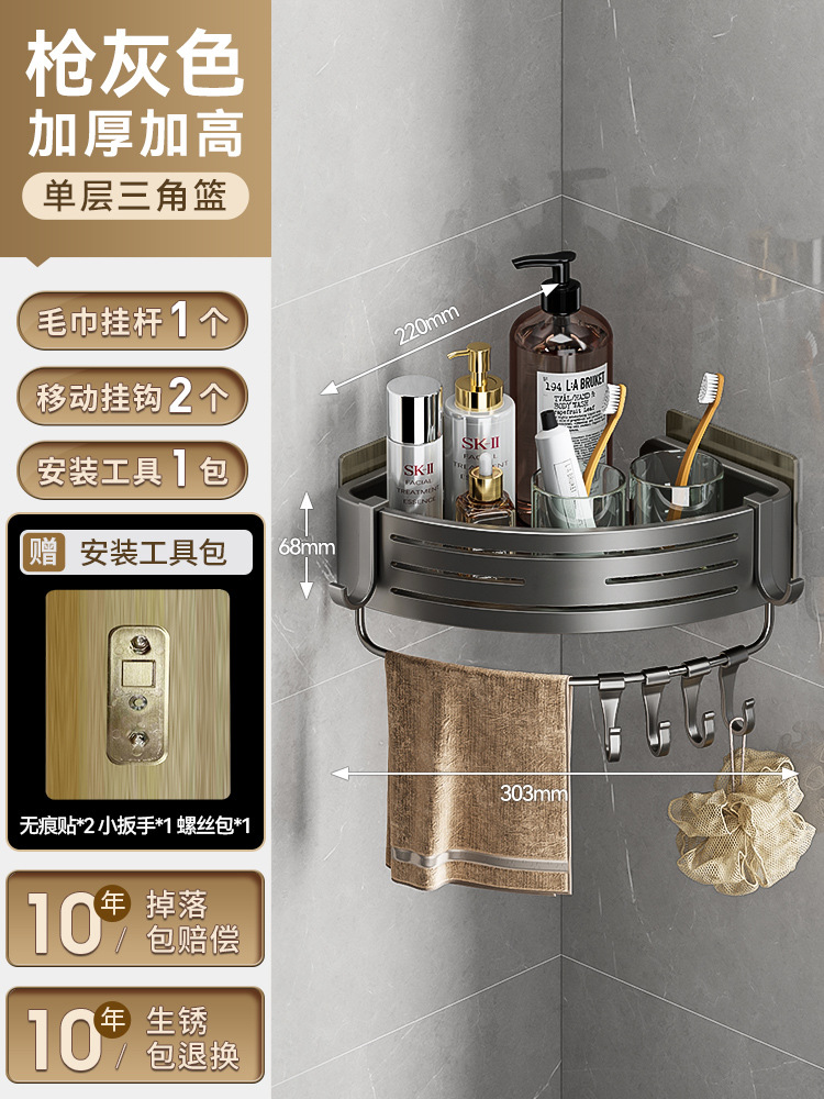 건 그레이 욕실 삼각형 스토리지 랙 펀치 프리 샤워 룸 화장실 코너 삼각형 바구니 화장실 벽걸이 형 스토리지 랙