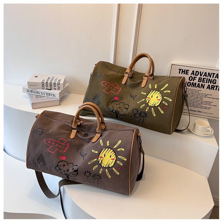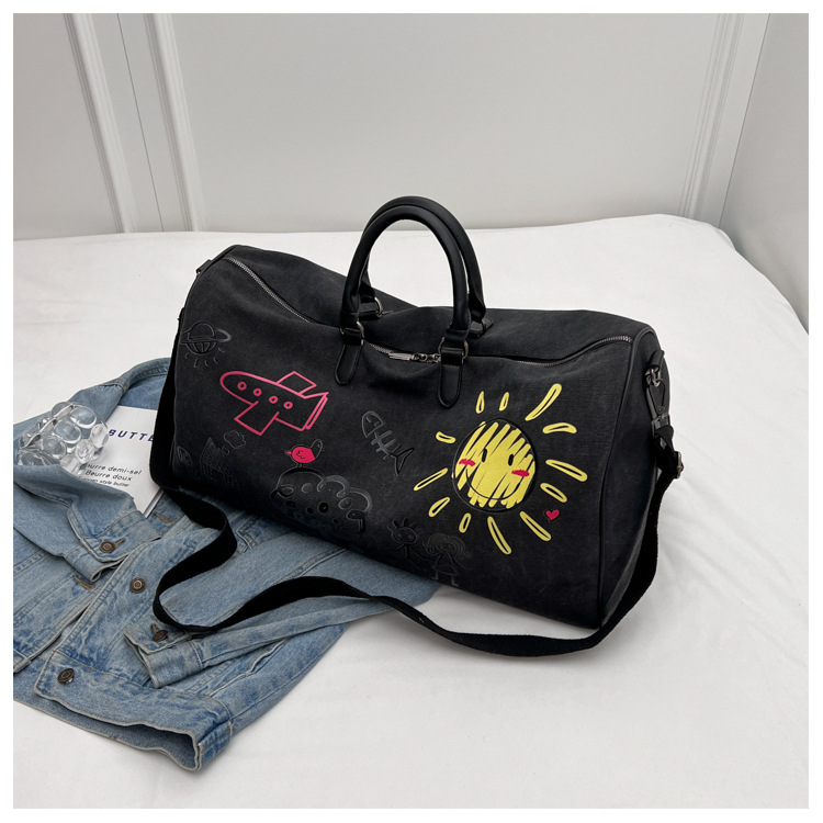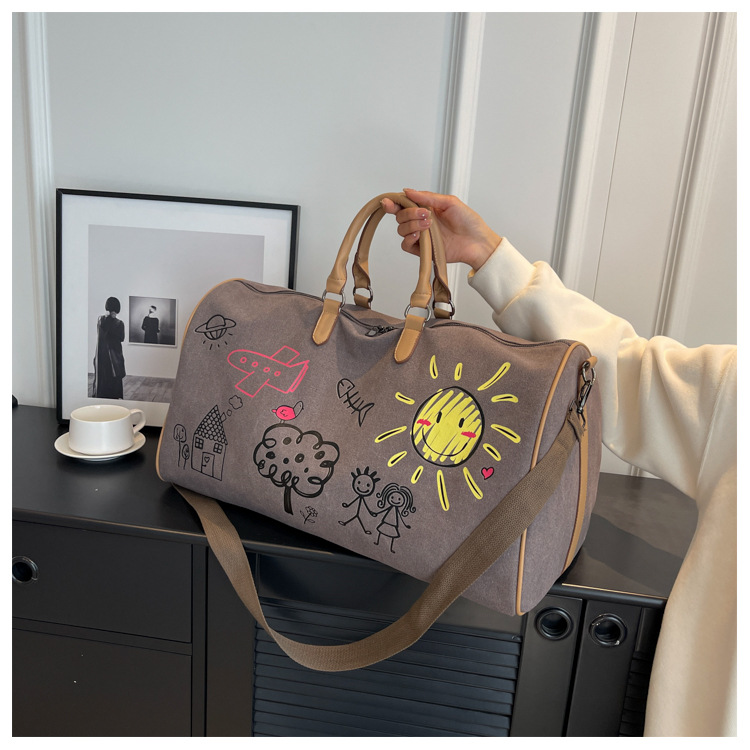 맞춤형 낙서 여행 가방, 건식 및 습식 분리 피트니스 가방, 단거리 출장 수하물 가방, 대용량 인쇄 로고 요가 가방