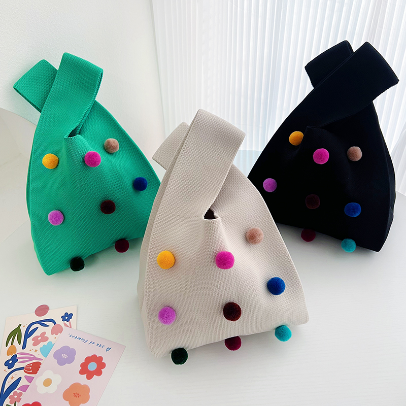 일본과 한국 스타일 다채로운 젤리 빈 볼 조끼 도파민 소녀 스타일 니트 핸드백