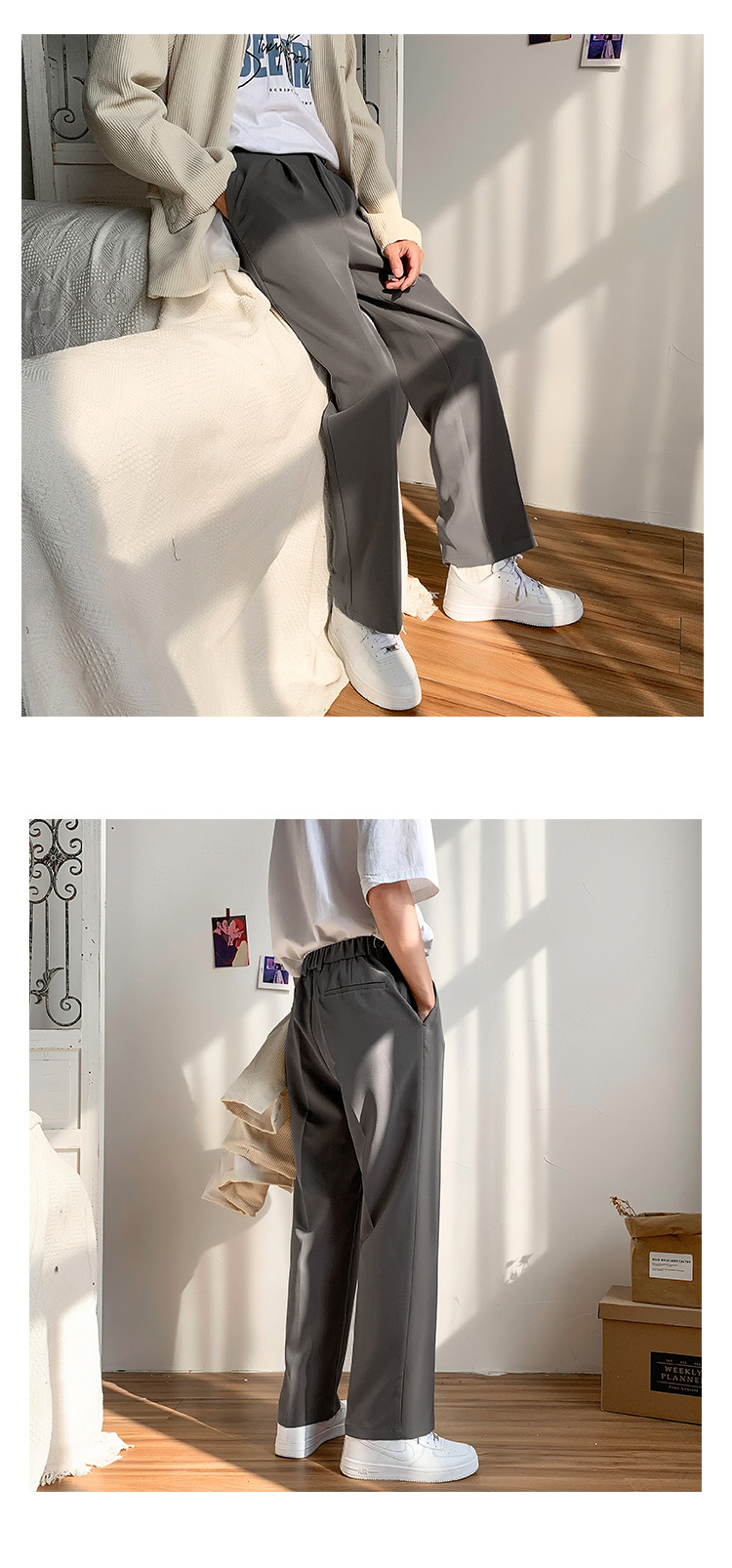 봄과 여름 남성용 심플 펜던트 팬츠 남성용 한국식 패셔너블한 루즈한 남성용 스트레이트 레그 와이드 레그 캐주얼 세트 팬츠