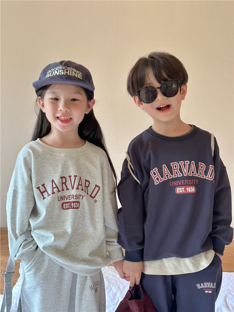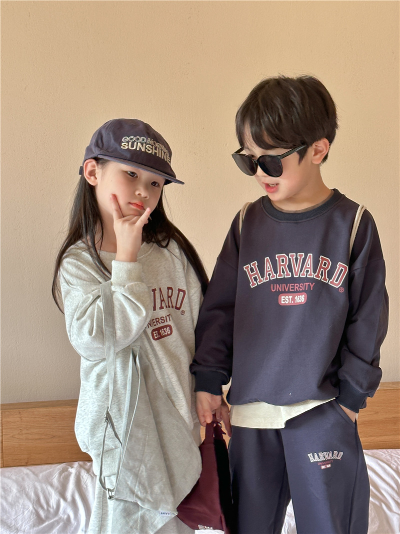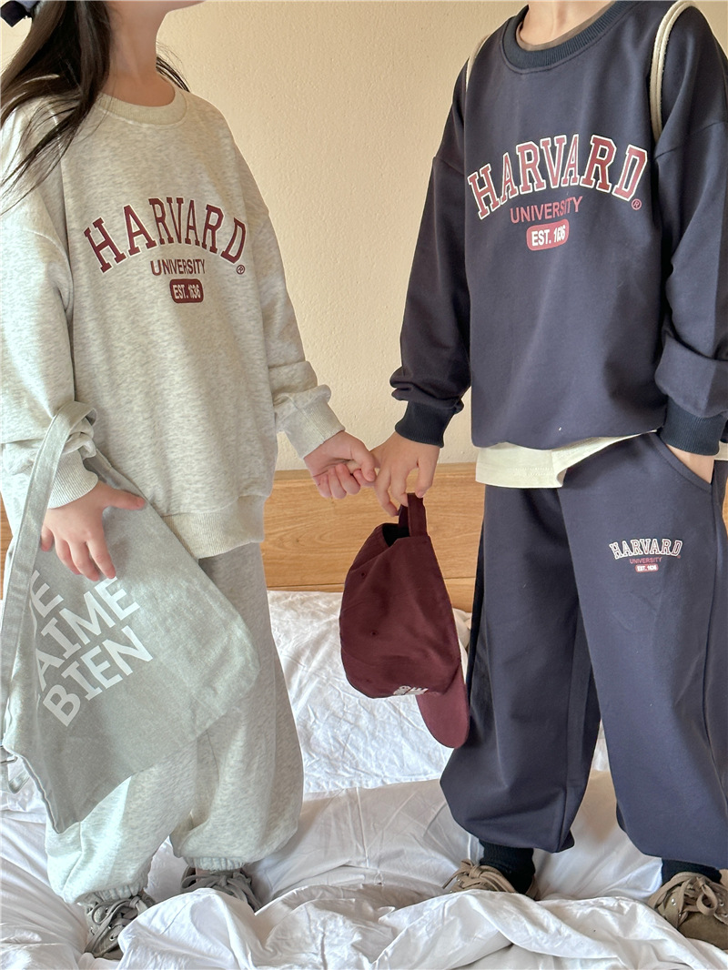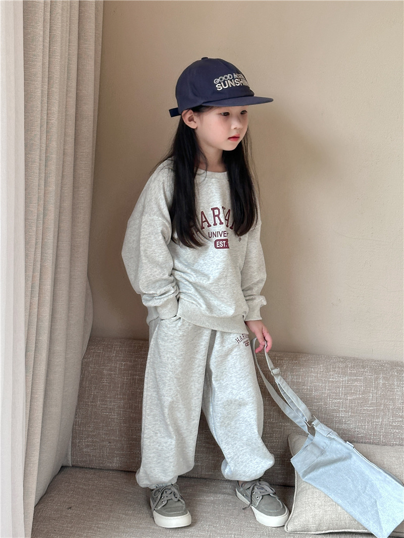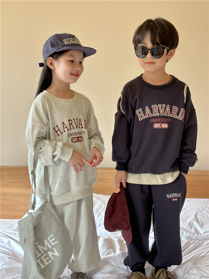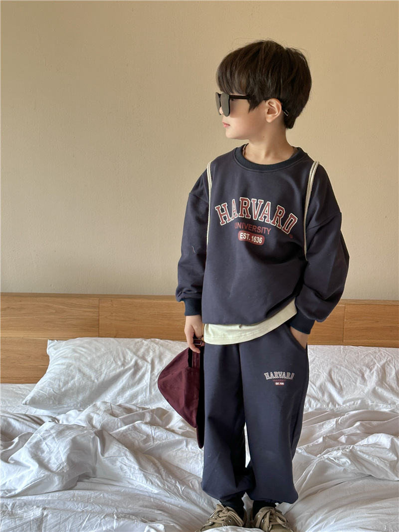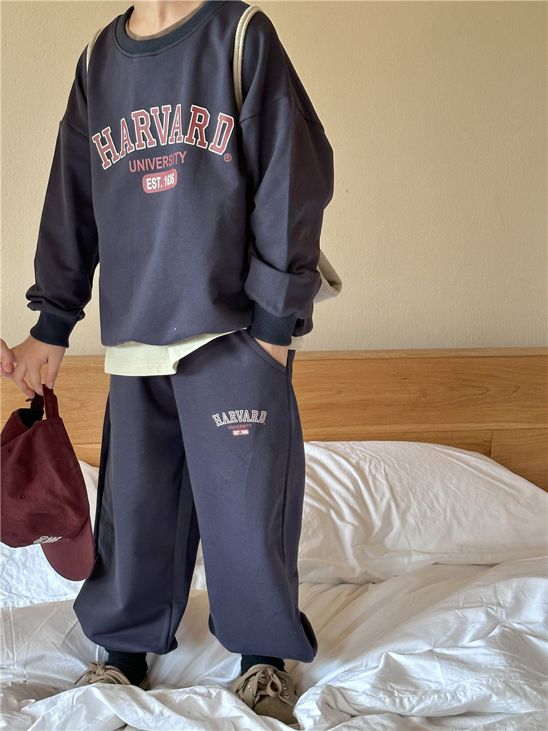 어린이 세트 2025 봄 새 소년 편지 인쇄 스포츠 세트 아기 땀 투피스 유행 땀 바지스토어 가기