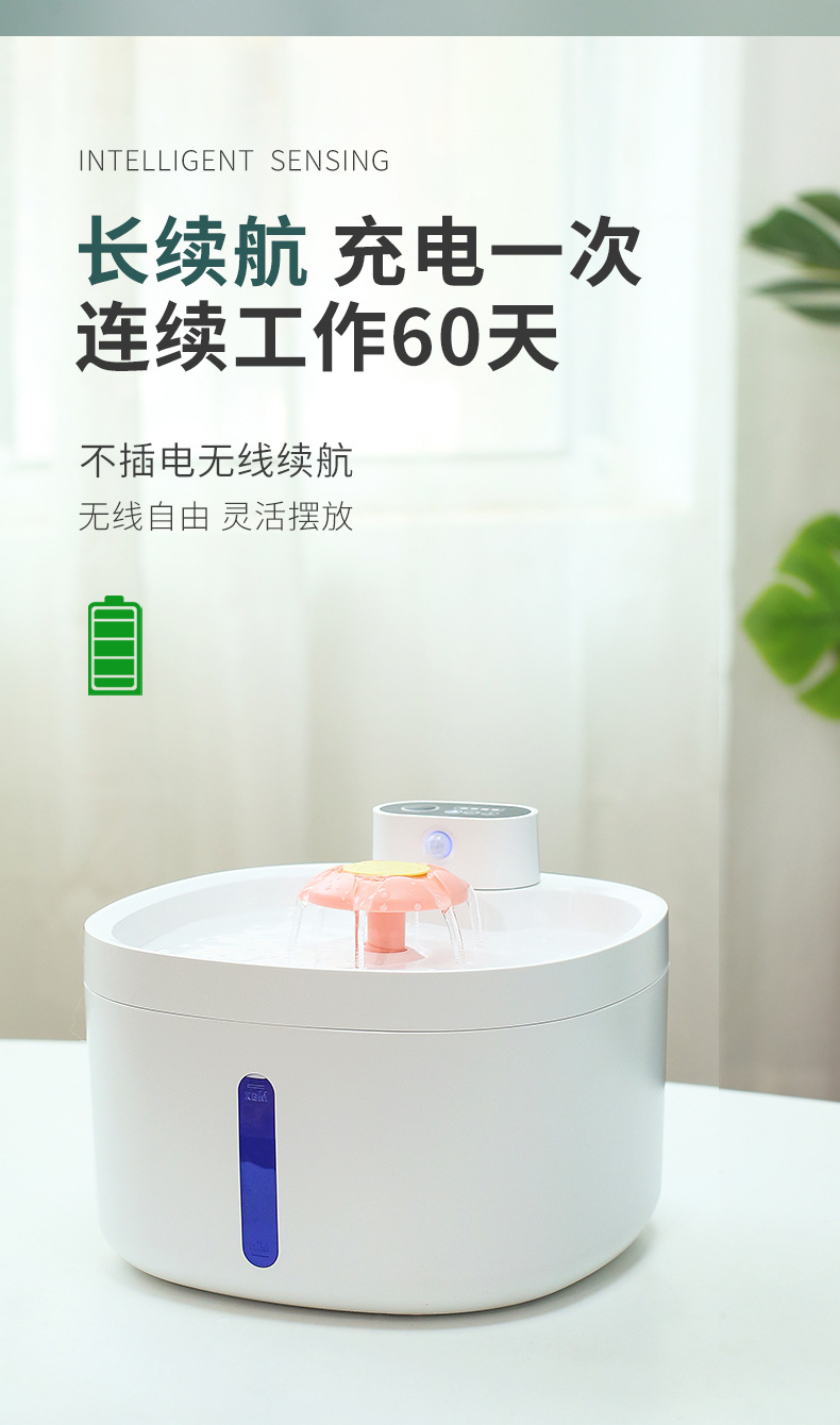 지능형 유도 무선 애완 동물 물 디스펜서 3 개의 물 배출구 모드 대용량 2.6L 긴 내구성 국경 간 폭발스토어 가기