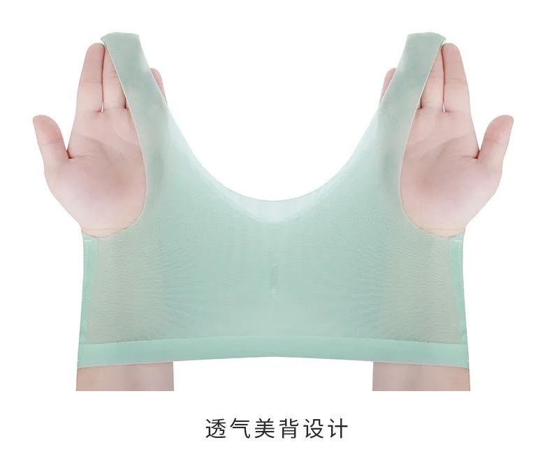 초박형 아이스 실크 뷰티 백 플러스 사이즈 원활한 속옷 무테 푸시 업 브라 스포츠 조끼 스타일 여성의 유방 포장