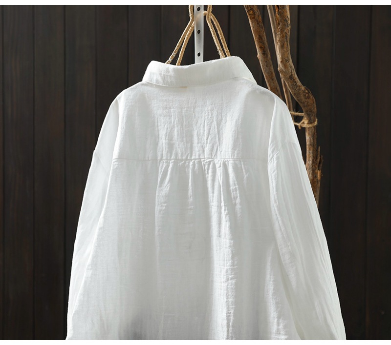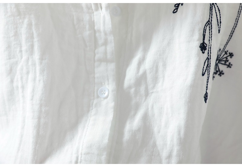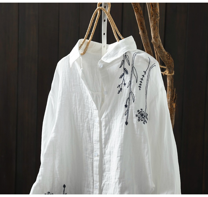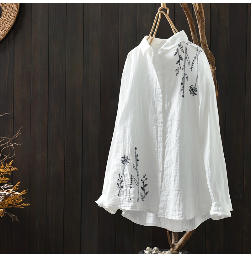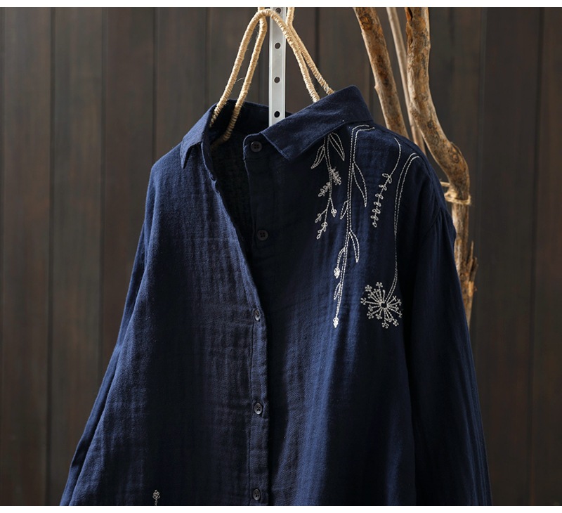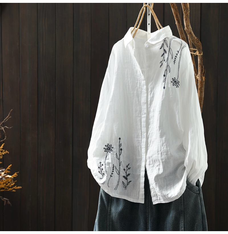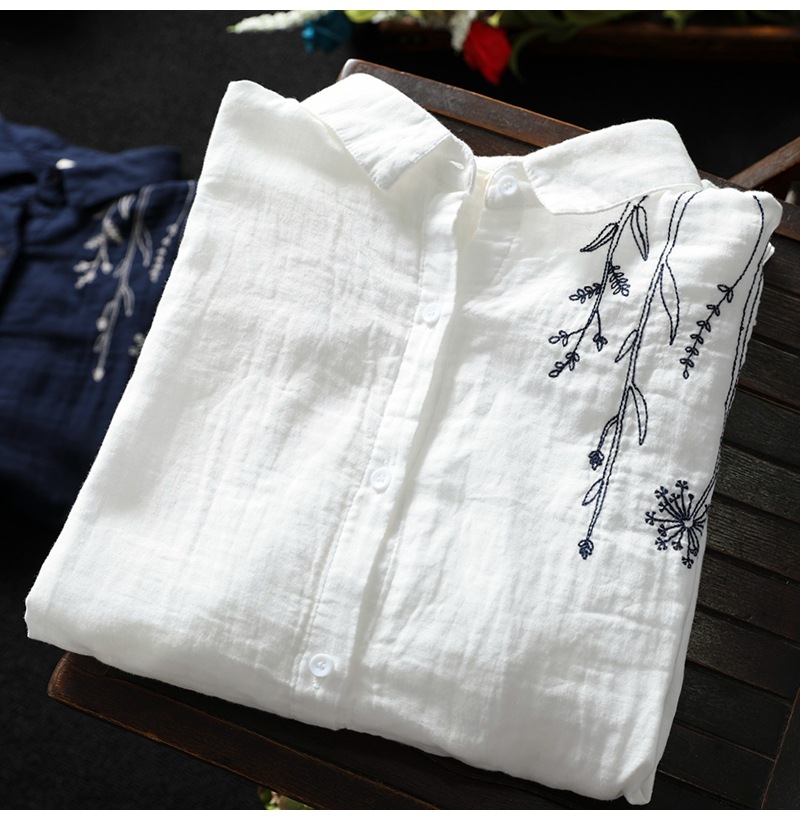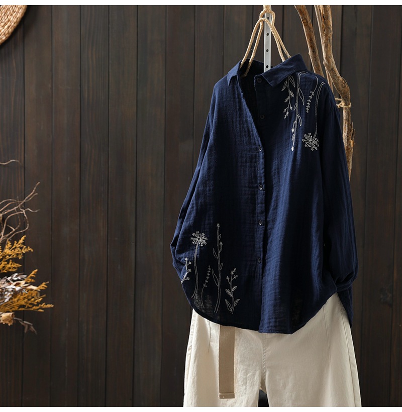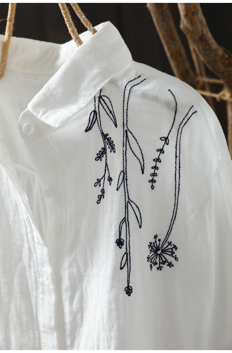 X 트릭 모든 매치 유행 셔츠 여성의 2023 여름 새로운 예술적 복고풍 자수 옷깃 단색 긴 소매 탑스토어 가기