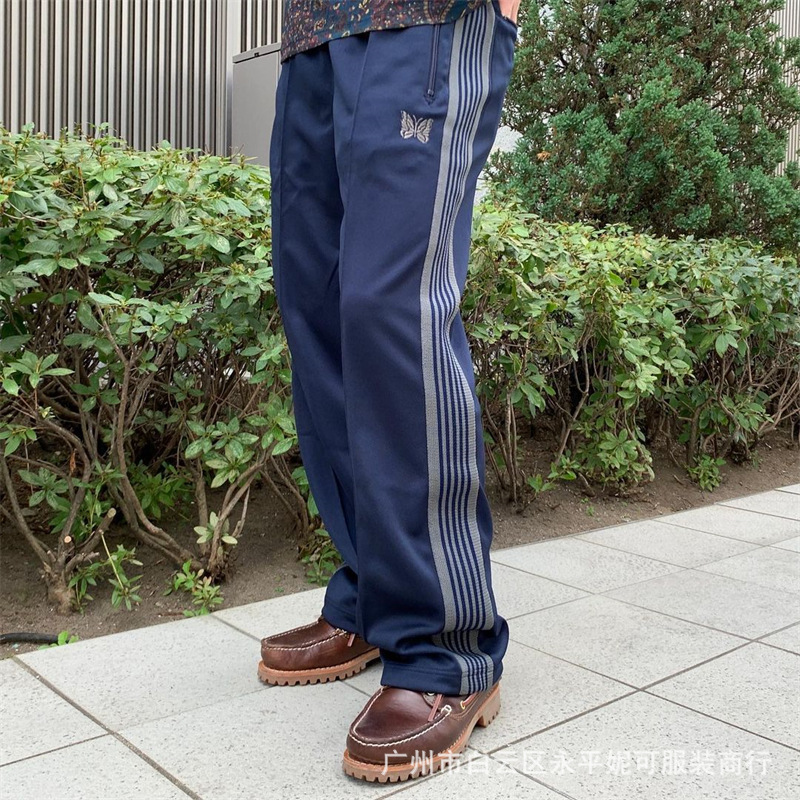 바늘 트랙 나비 바지 트렌디 브랜드 틈새 디핑 느슨한 남성과 여성의 스트레이트 레그 스포츠 캐주얼 롱 팬츠