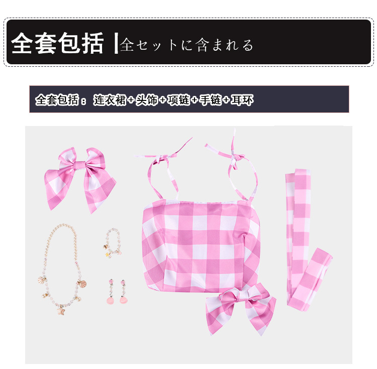 • 바비 파우더 격자 무늬 원피스 + 액세서리