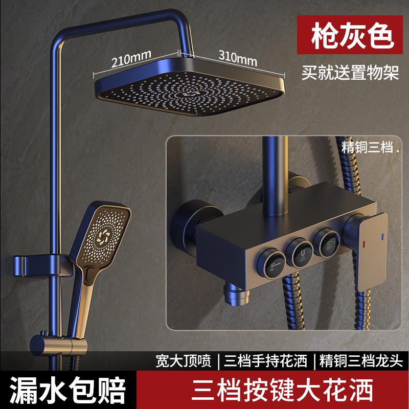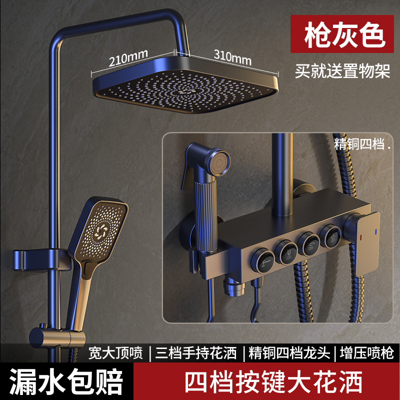 모든 구리 샤워 세트 일정한 온도 샤워 헤드 가압 목욕 가정용 욕실 목욕 위생 도자기 총 회색