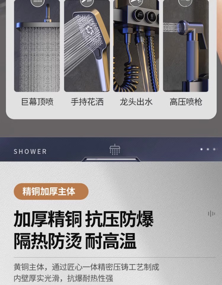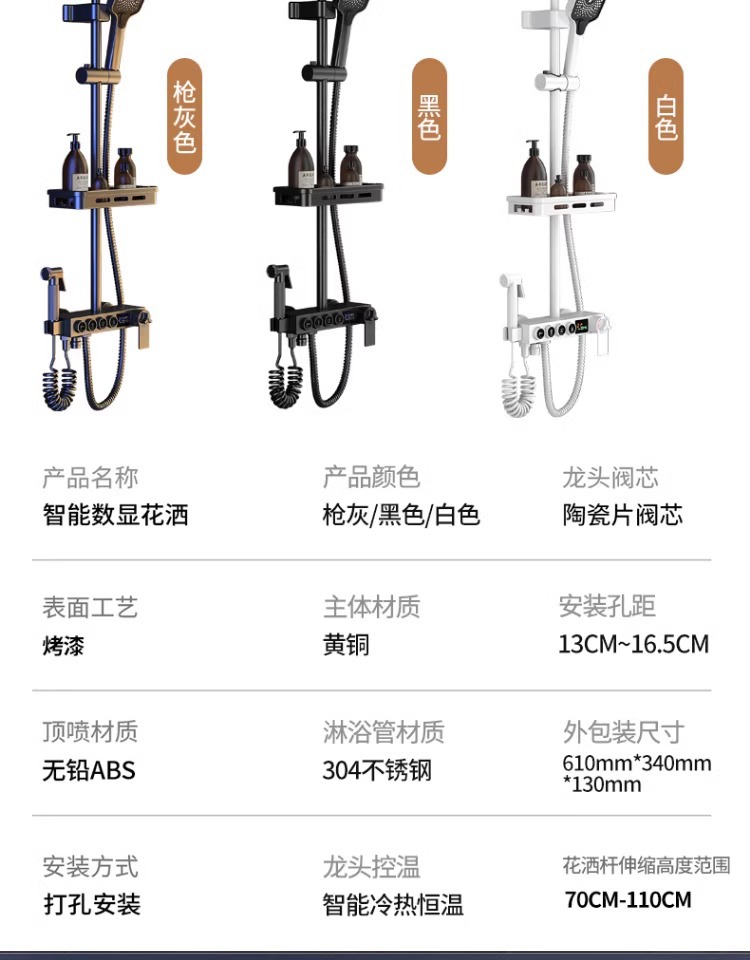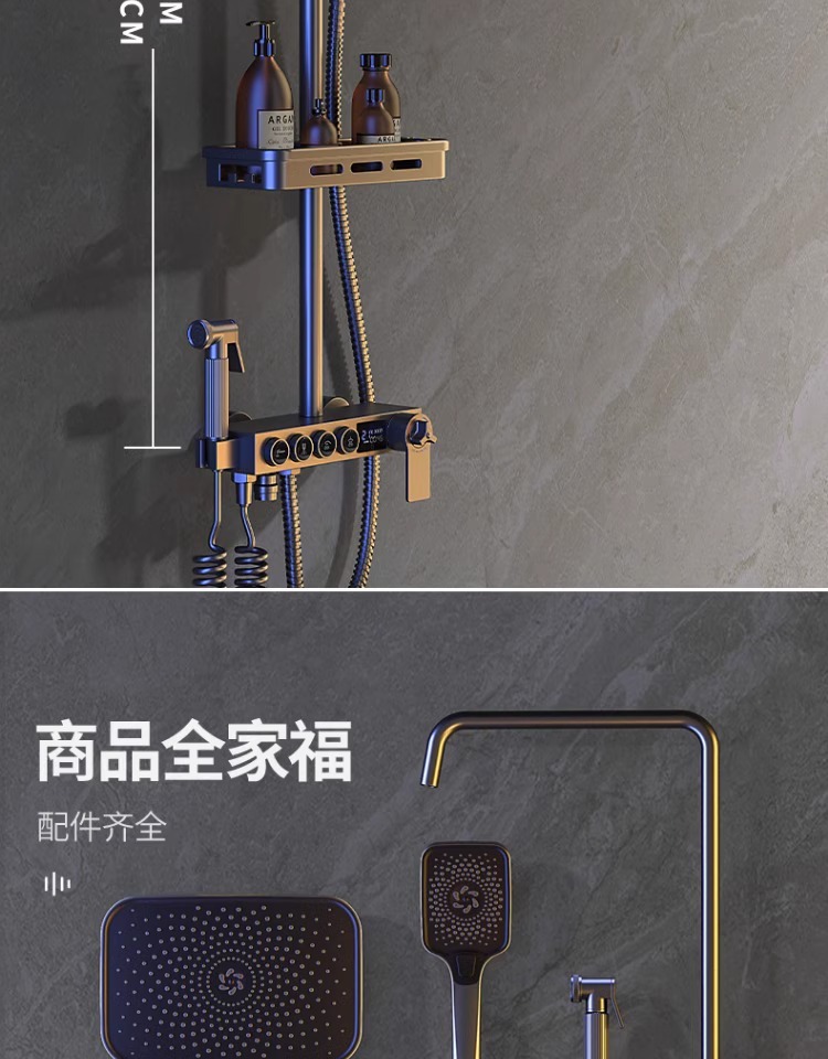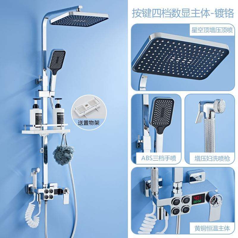 모든 구리 샤워 세트 일정한 온도 샤워 헤드 가압 목욕 가정용 욕실 목욕 위생 도자기 총 회색스토어 가기