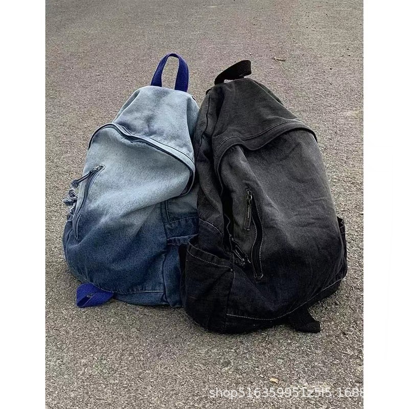 인기 캐주얼 데님 학생 가방 일본풍 빈티지 워싱 데님 백팩 대용량 가방
