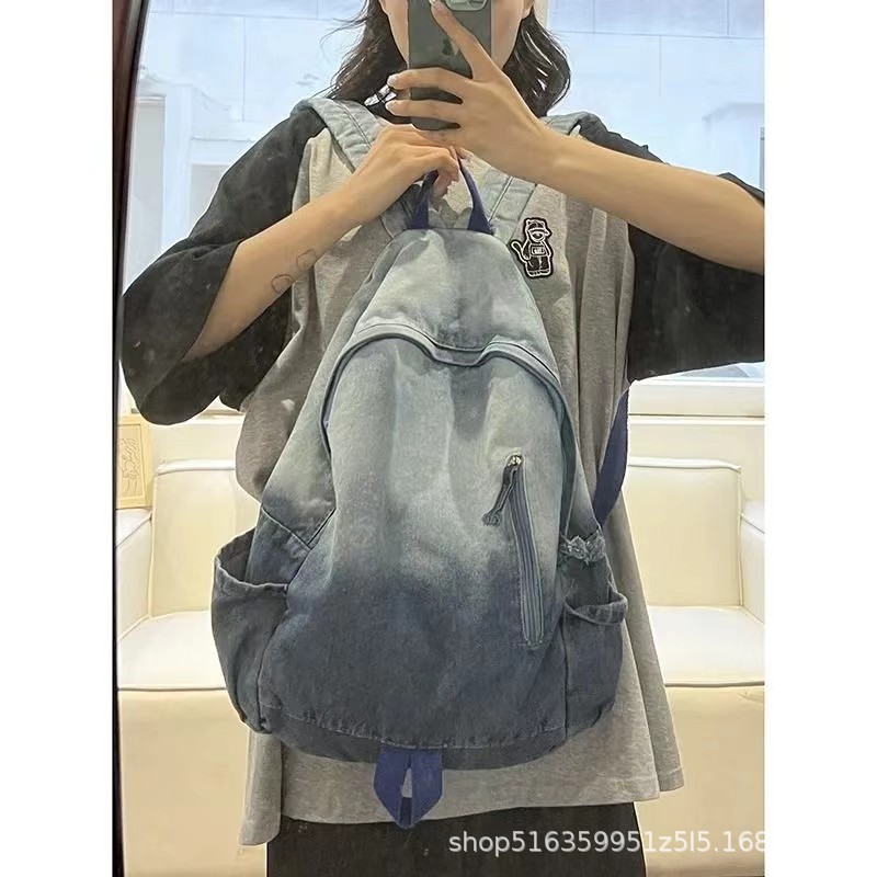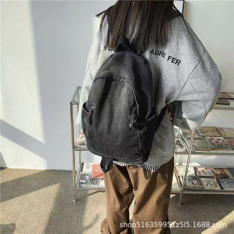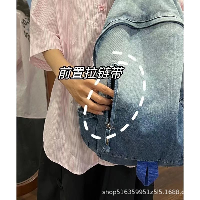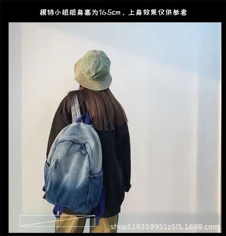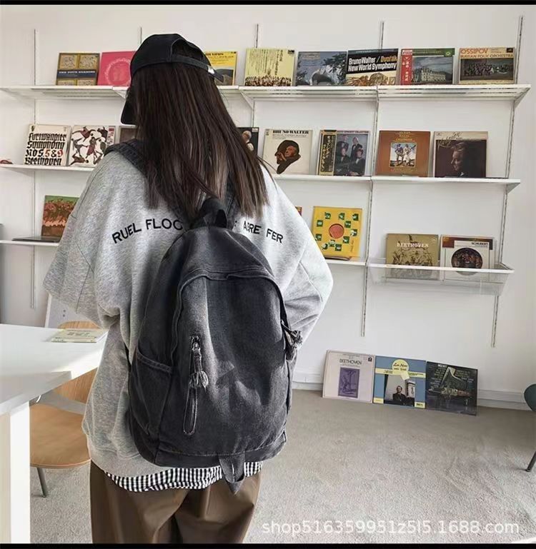 인기 캐주얼 데님 학생 가방 일본풍 빈티지 워싱 데님 백팩 대용량 가방스토어 가기