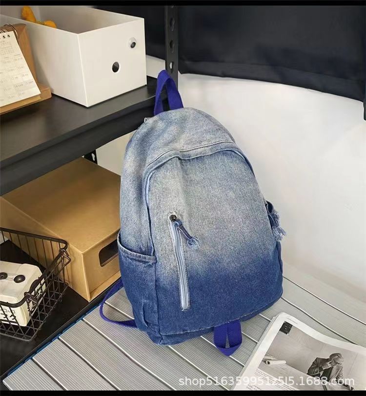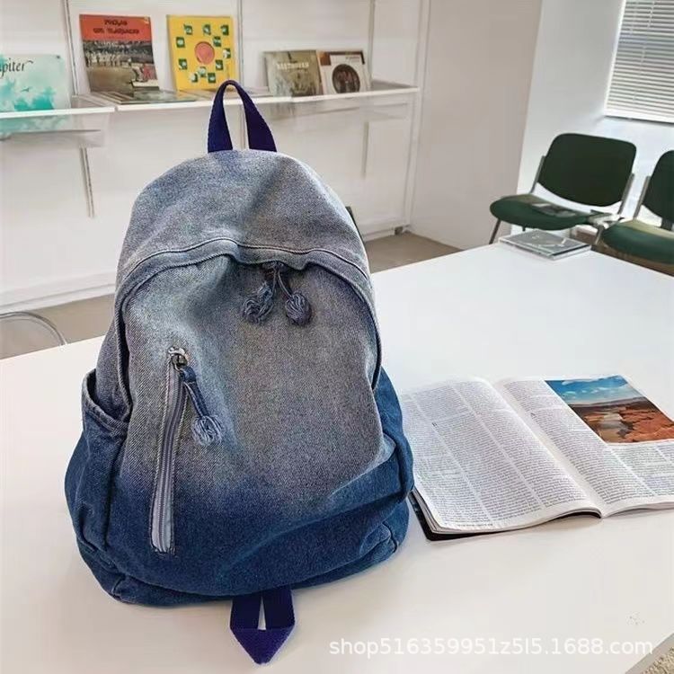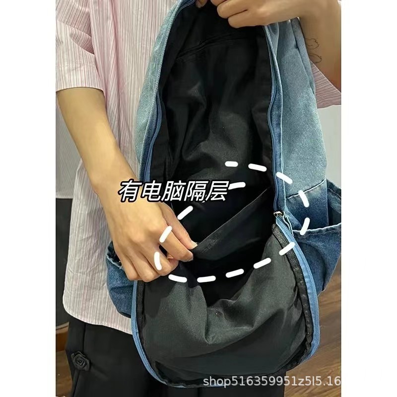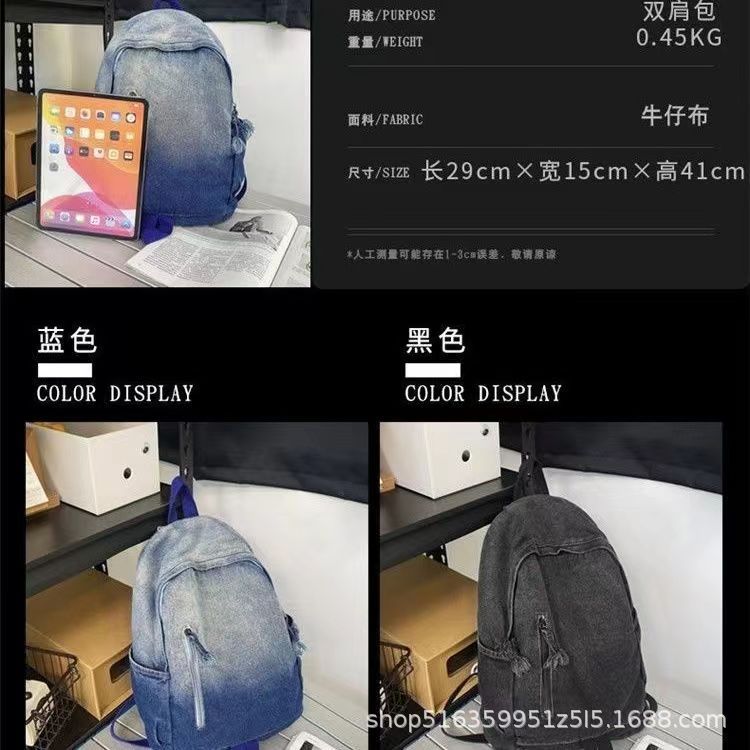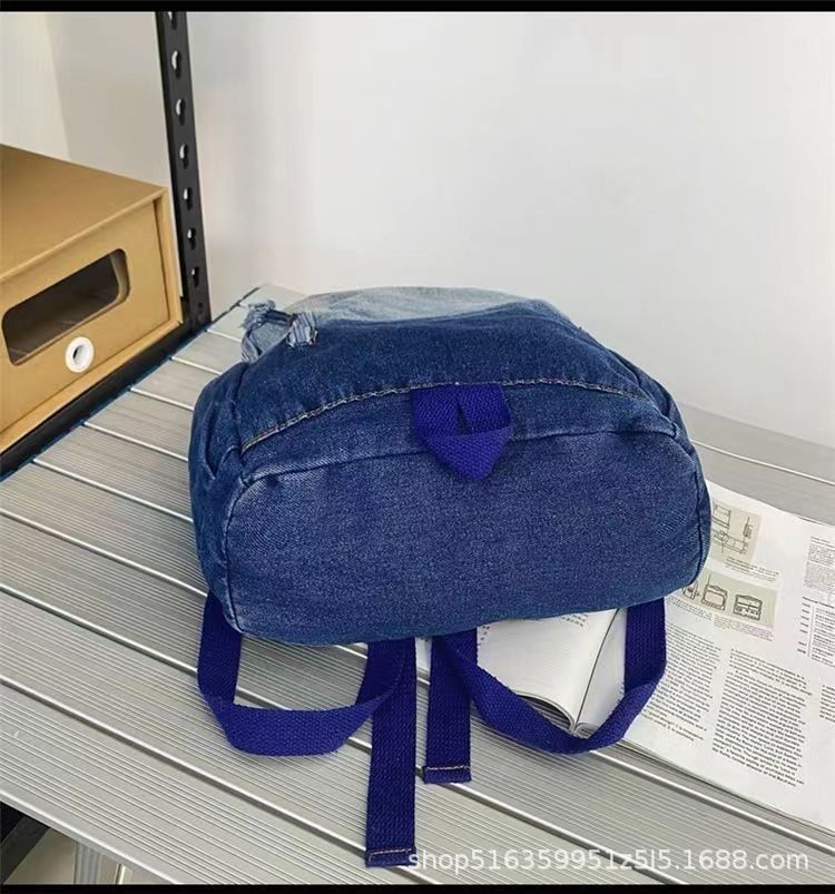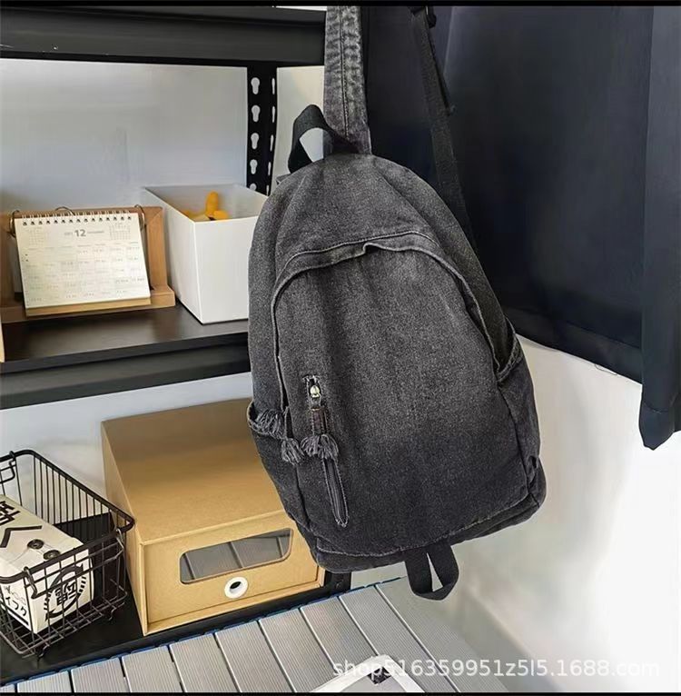 인기 캐주얼 데님 학생 가방 일본풍 빈티지 워싱 데님 백팩 대용량 가방스토어 가기