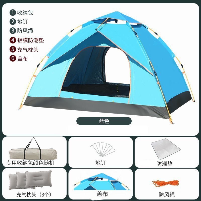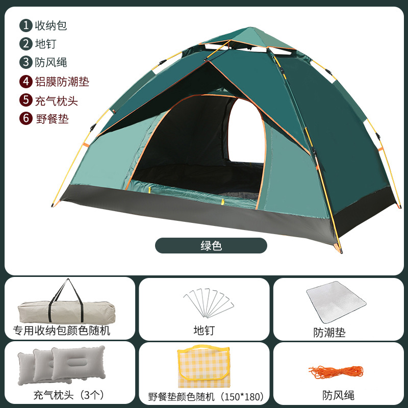 방수 완전 자동 여행 텐트 휴대용 야외 접이식 빠른 개방 두꺼운 2 인용 야외 빗물 방지 캠핑