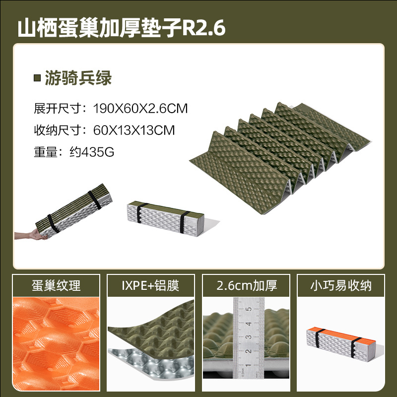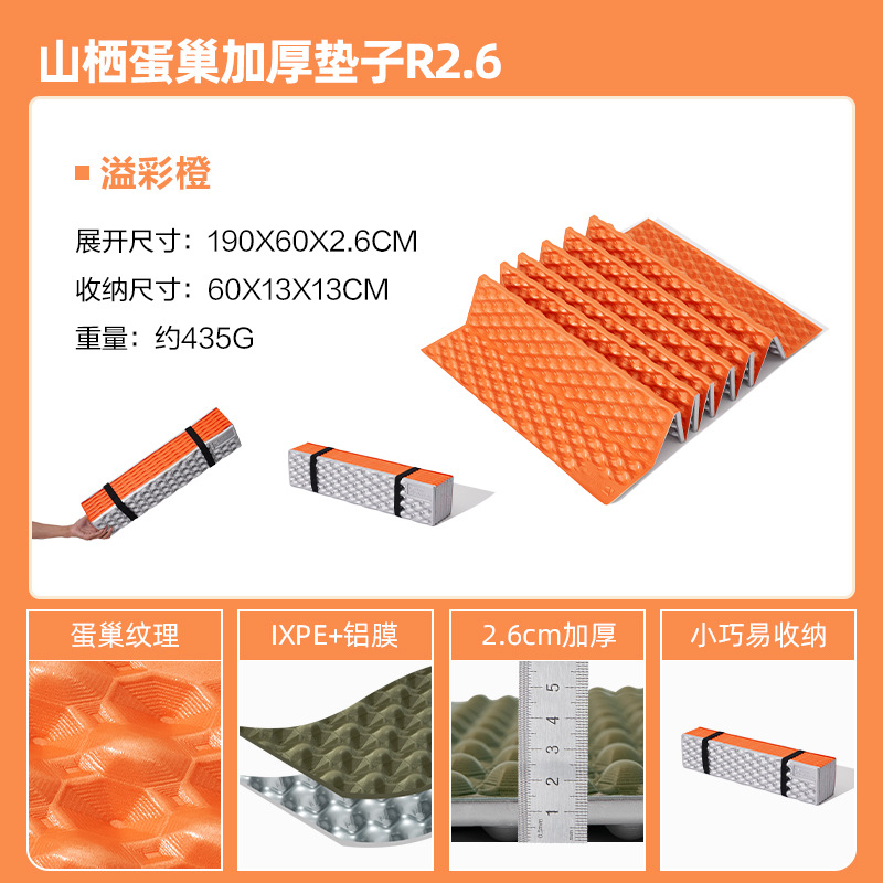 무가오디 산악용 에그네스트 두꺼운 매트 R2.6 야외 캠핑용 접이식 1인용 휴대용 방습 매트 R2.2