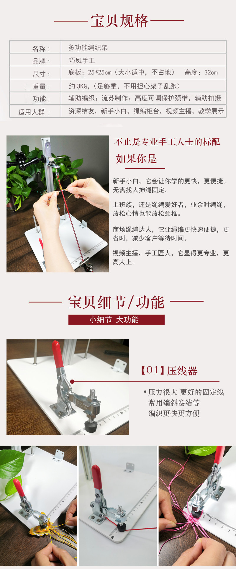 다기능 손으로 짠 랙 핸드 로프 목걸이 로프 직조 유물 와이어 그리퍼 직조 고정 도구 로프 직조 보조 장치