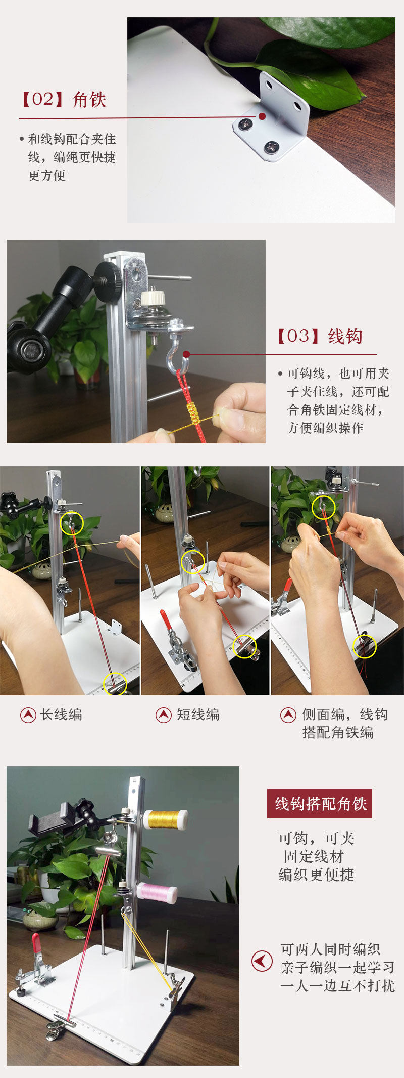 다기능 손으로 짠 랙 핸드 로프 목걸이 로프 직조 유물 와이어 그리퍼 직조 고정 도구 로프 직조 보조 장치스토어 가기