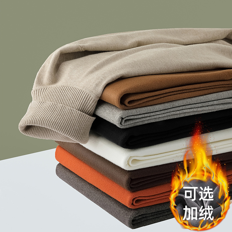 가을과 겨울 스웨터 남자의 하이 칼라 단색 기모 두꺼운베이스 니트 스웨터 한국 스타일 슬림핏 청소년 남성 스웨터