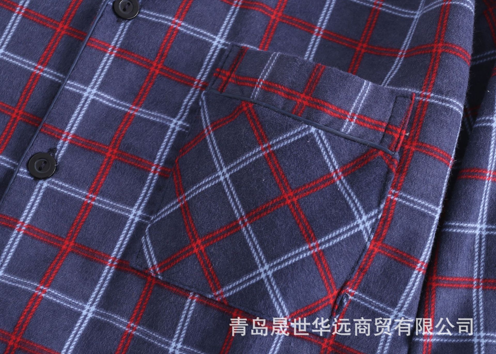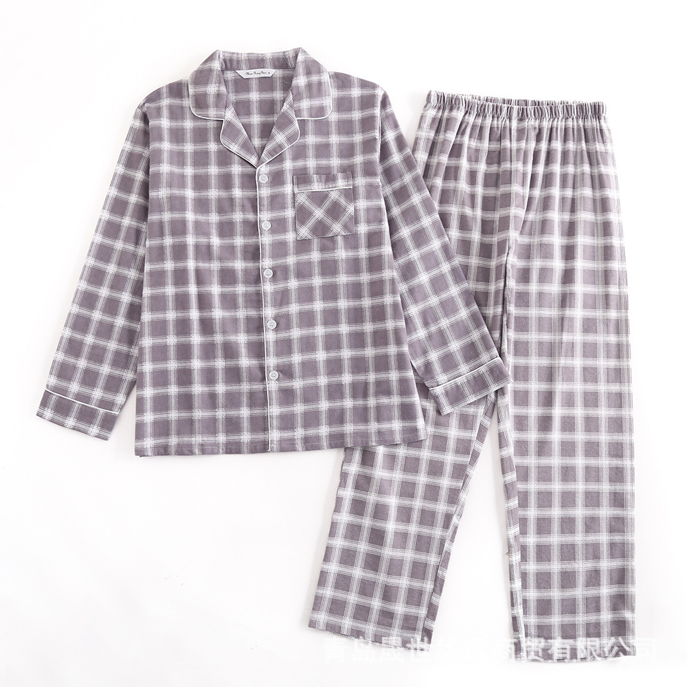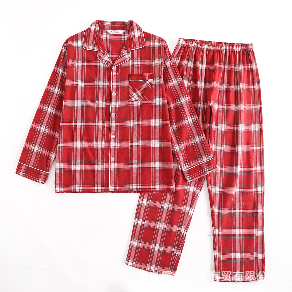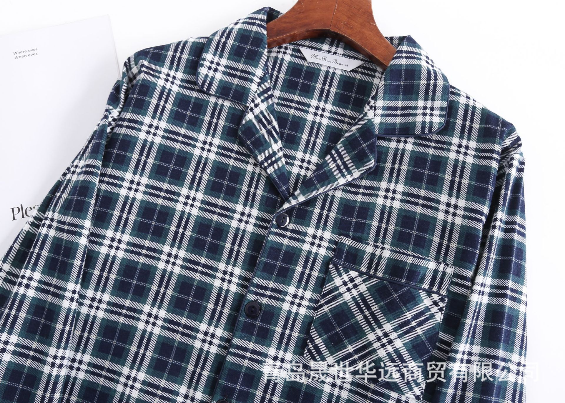면 플란넬 긴팔 바지 남자의 느슨한 잠옷 봄과 가을 세트 격자 무늬 플란넬 플러스 사이즈 플러스 지방 가정 의류스토어 가기