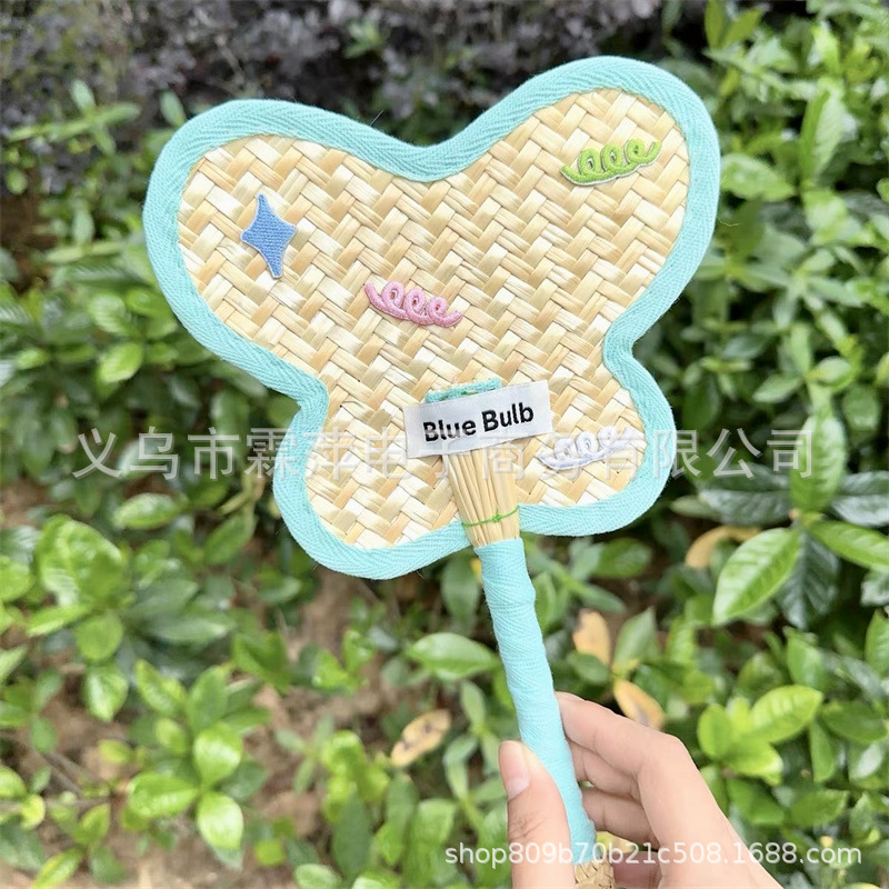 작은 빨간 책 같은 스타일 개 팬 귀여운 여름 나비 cattail 팬 인터넷 연예인 자매 손으로 완성 된 밀 밀짚 팬
