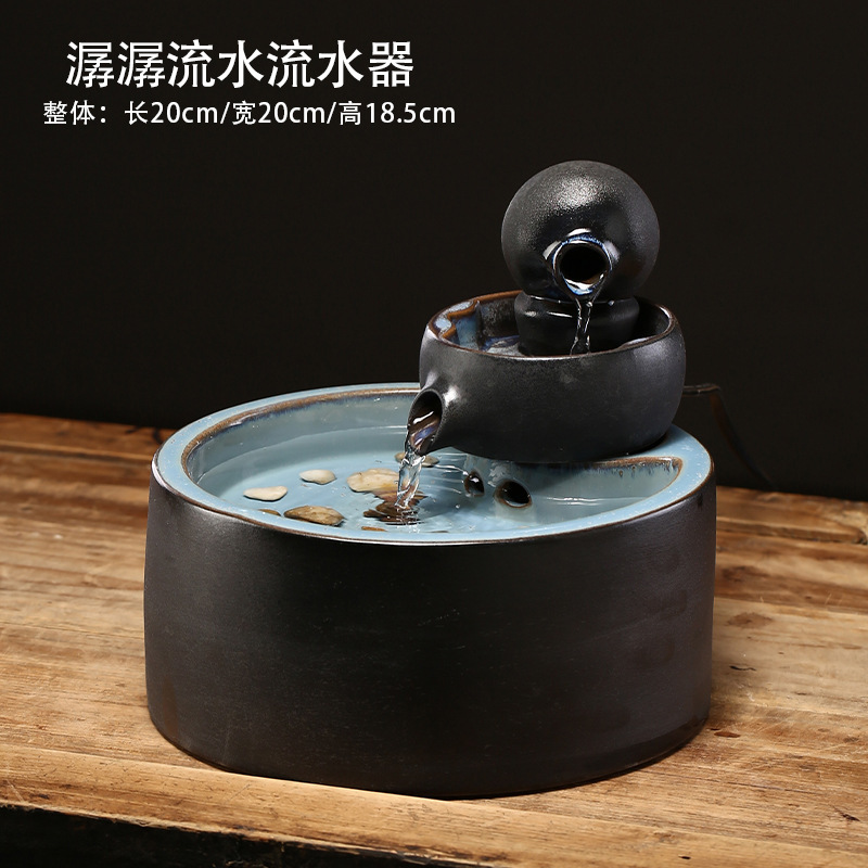 새로운 중국 스타일 행운의 물 장식품 세라믹 작은 데스크탑 거실 티 테이블 사무실 장식 순환 물 풍경스토어 가기