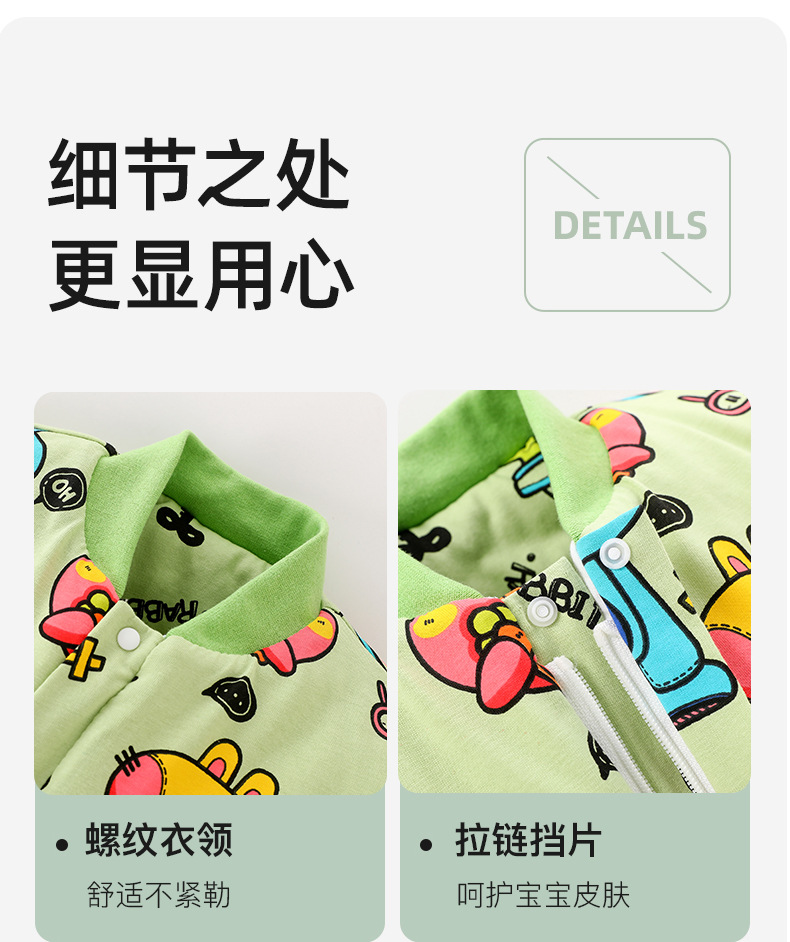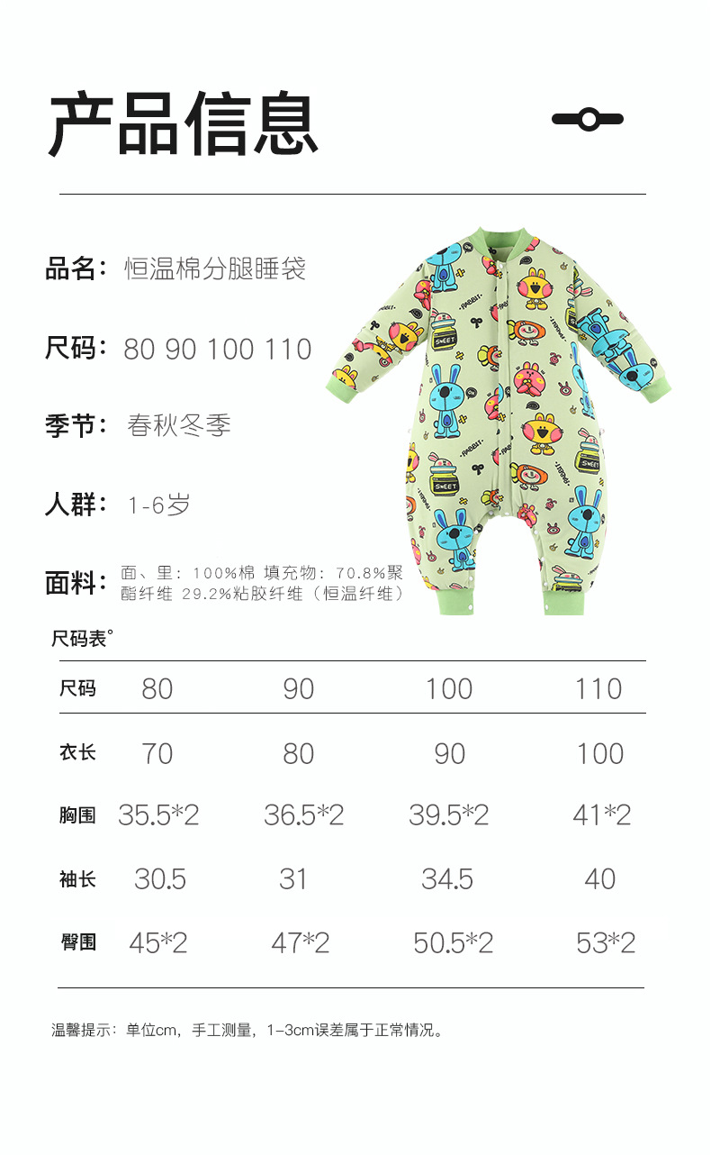 • 0-15 분리 가능한 슬리브 측면 조절에 적합한 두꺼운 일정 온도 면화 라이트 그린 만화 토끼