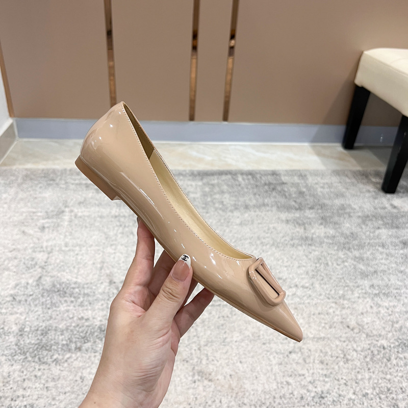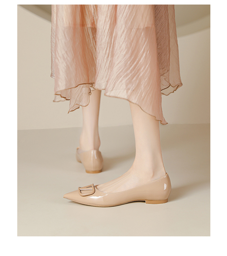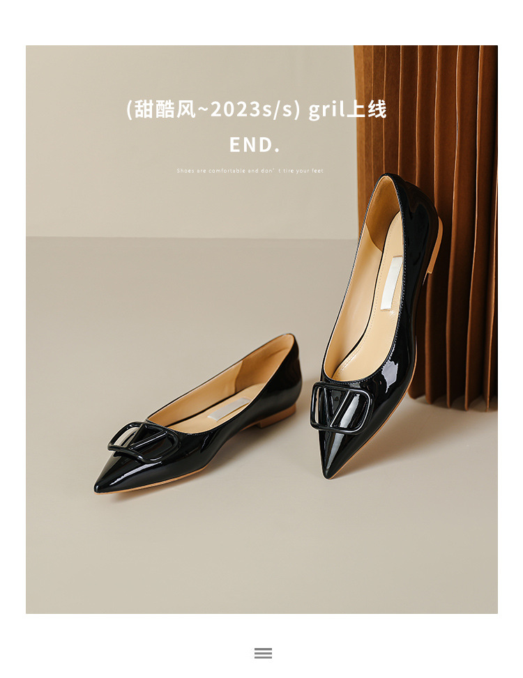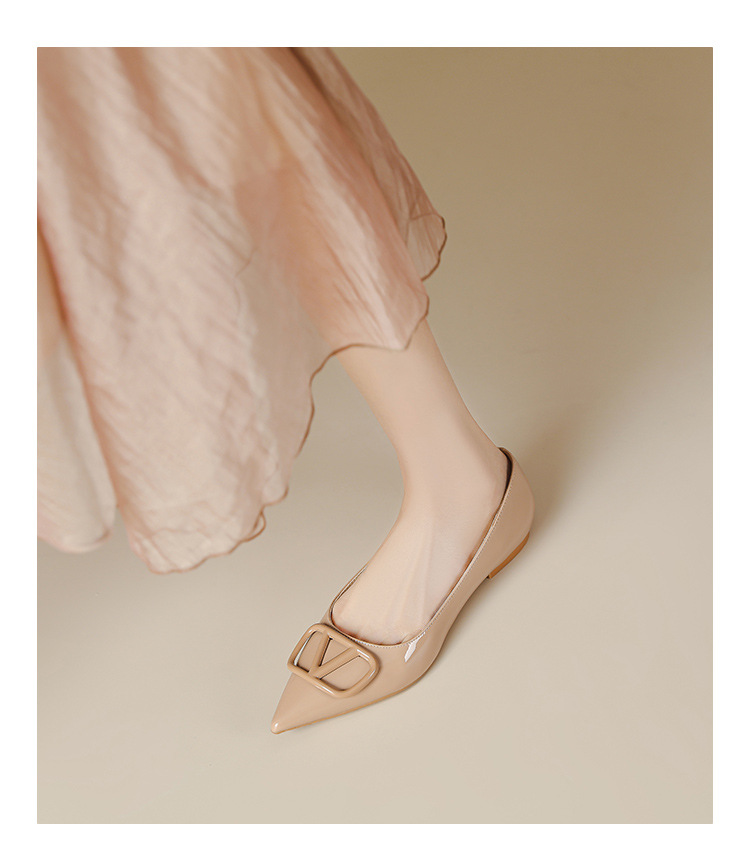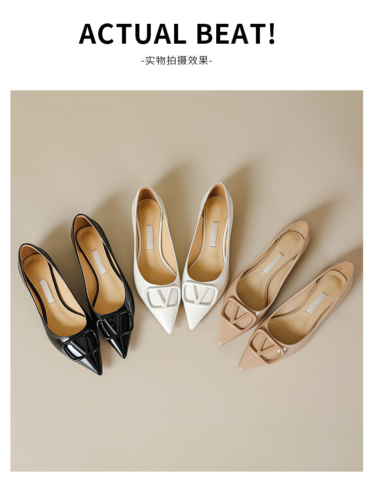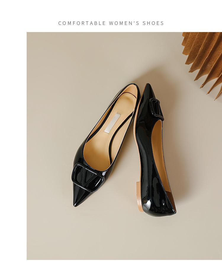 [양가죽] 새로운 뾰족한 신발 V 에나멜 가죽 누드 통근 플랫 슈즈 얕은 입 연예인 스타일 기질 여성용 싱글 슈즈