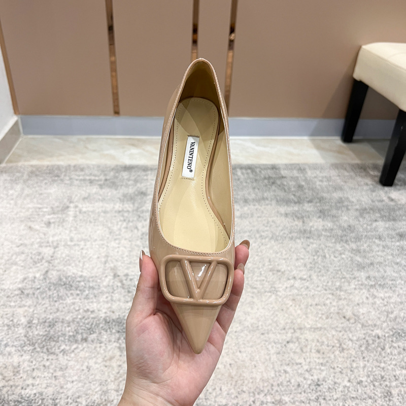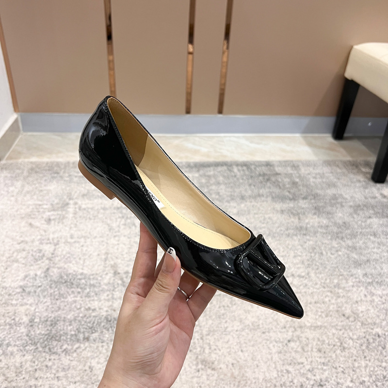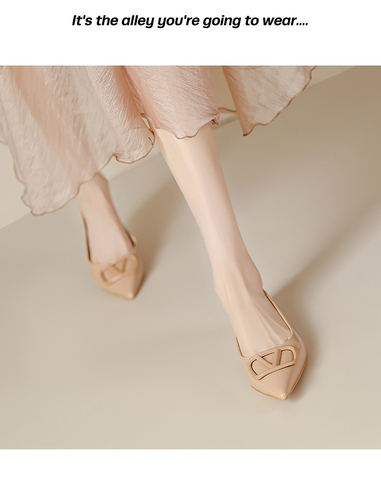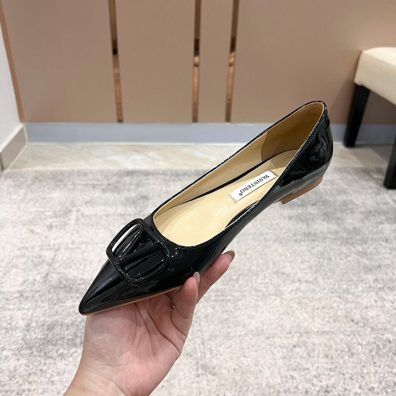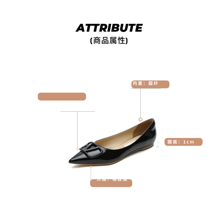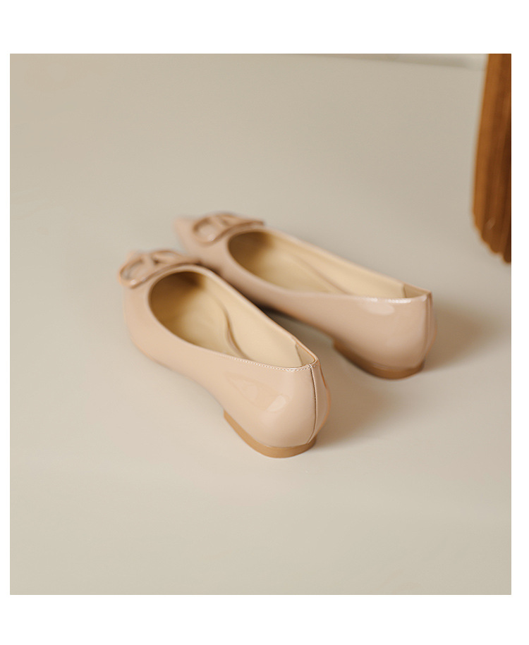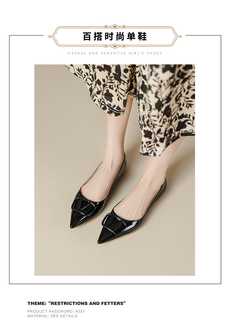 [양가죽] 새로운 뾰족한 신발 V 에나멜 가죽 누드 통근 플랫 슈즈 얕은 입 연예인 스타일 기질 여성용 싱글 슈즈