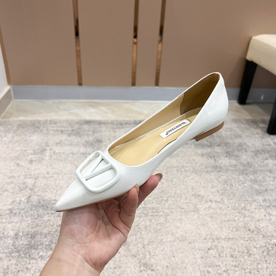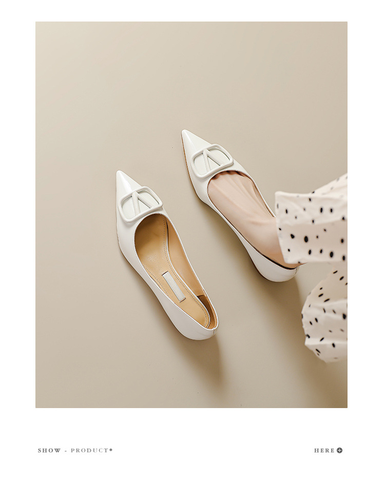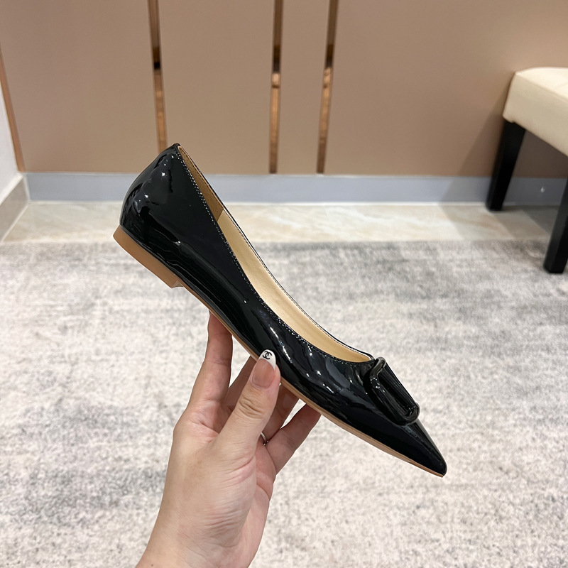 [양가죽] 새로운 뾰족한 신발 V 에나멜 가죽 누드 통근 플랫 슈즈 얕은 입 연예인 스타일 기질 여성용 싱글 슈즈스토어 가기