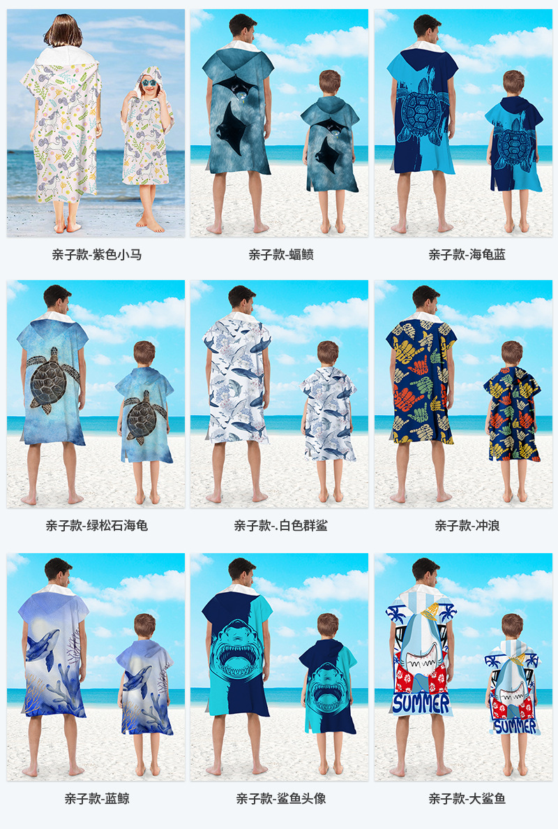 아마존 핫 세일 성인 부모-자식 후드 목욕 타올 극세사 테이크 업 케이프 비치 속건 목욕 가운 케이프 비치스토어 가기