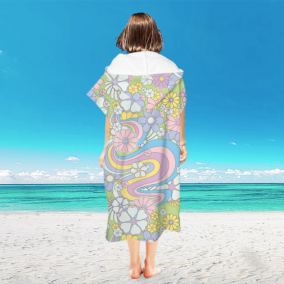 아마존 핫 세일 성인 부모-자식 후드 목욕 타올 극세사 테이크 업 케이프 비치 속건 목욕 가운 케이프 비치