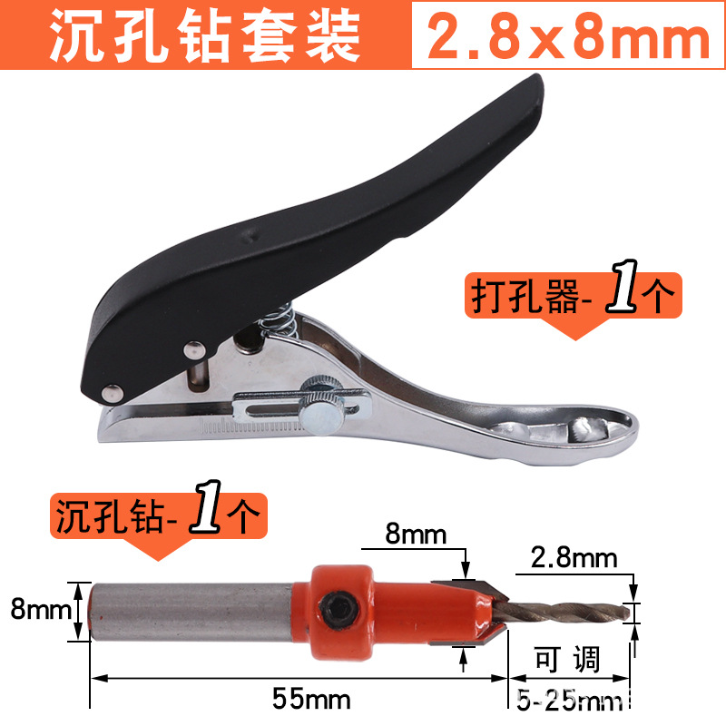 • 제한이있는 빨간색 올 아이언 펀칭 플라이어 8mm + 2.8mm 카운터 싱크 드릴
