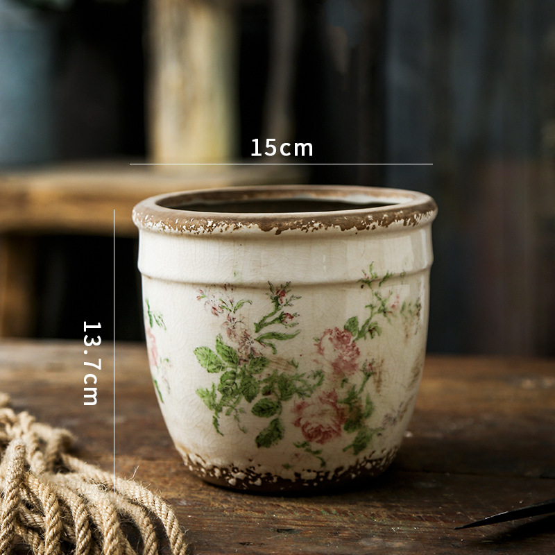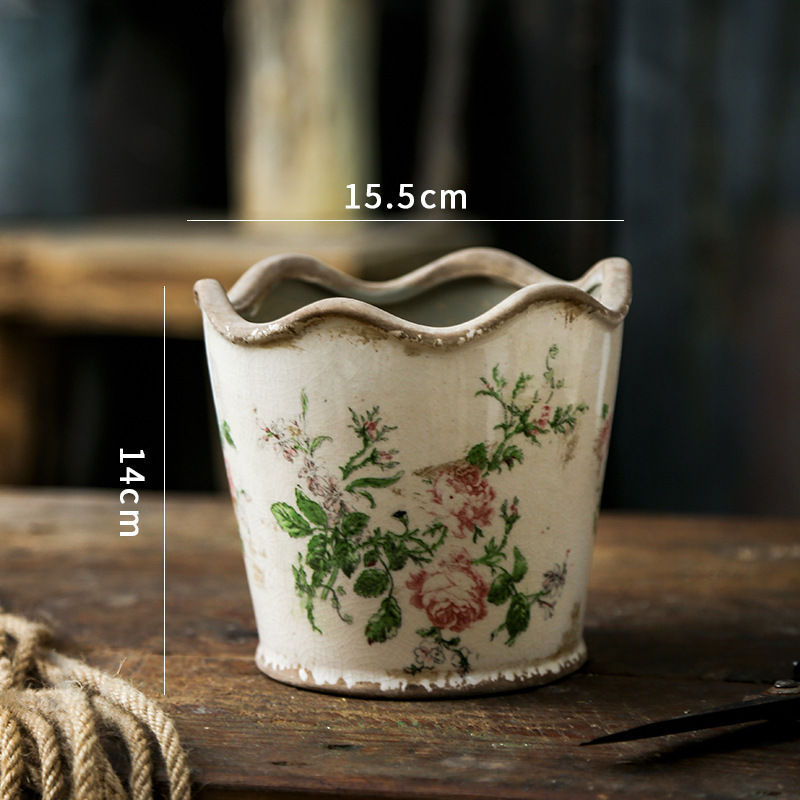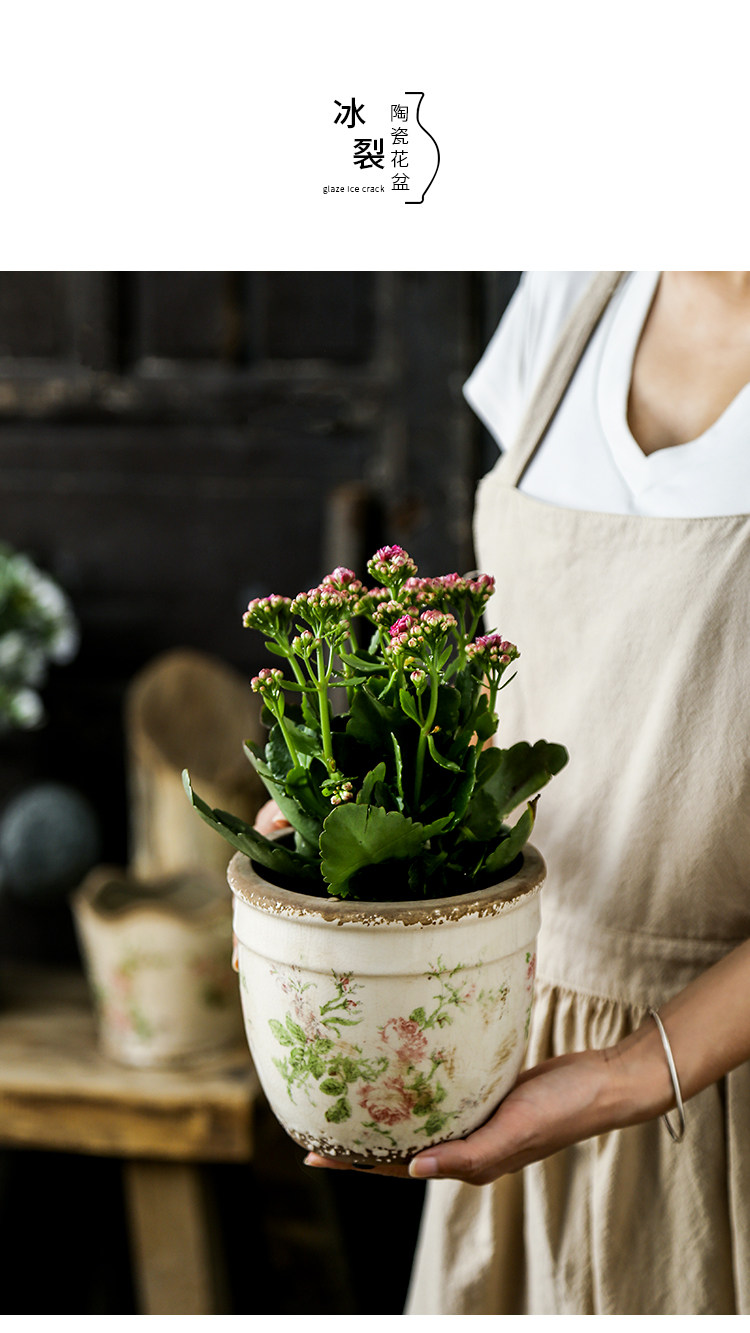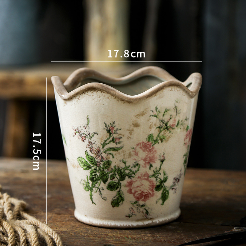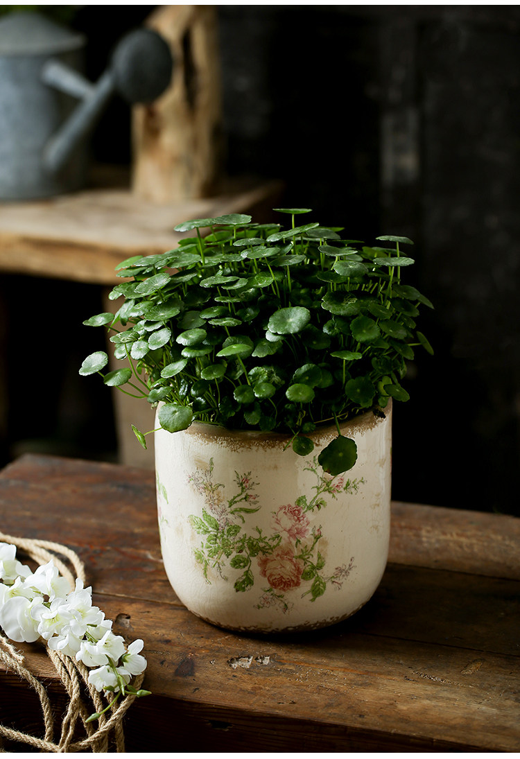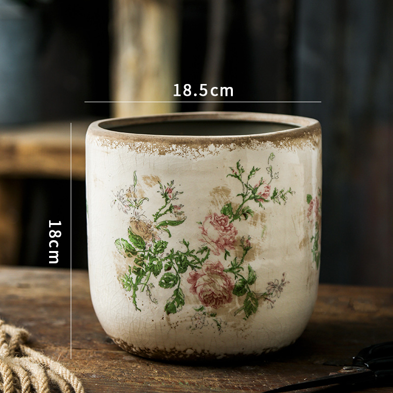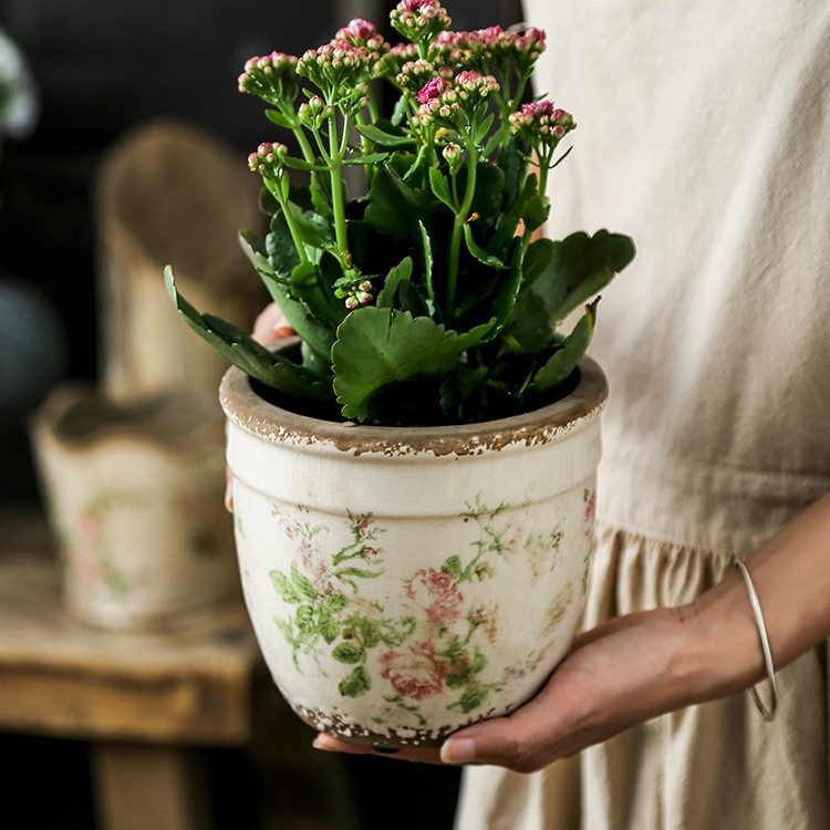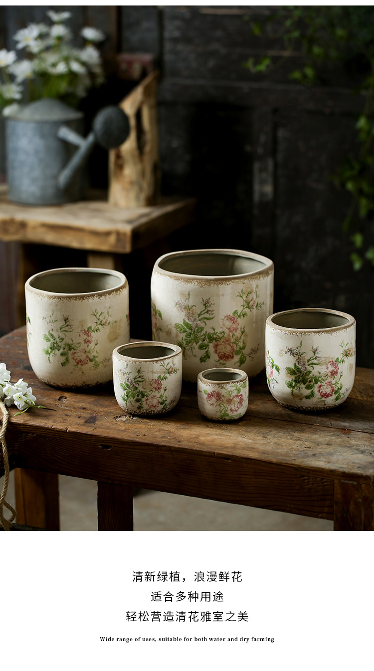 프랑스 복고풍 고민 핑크 장미 세라믹 화분 원예 꽃 녹색 심기 다육 북유럽 수경 도자기 장식