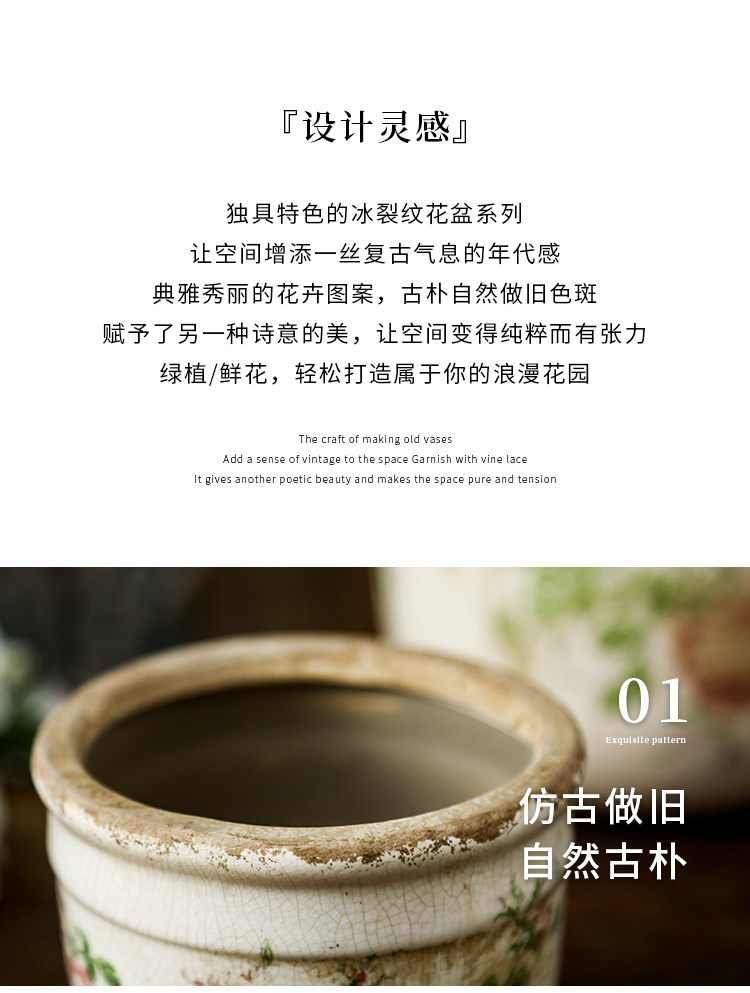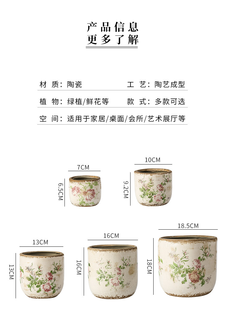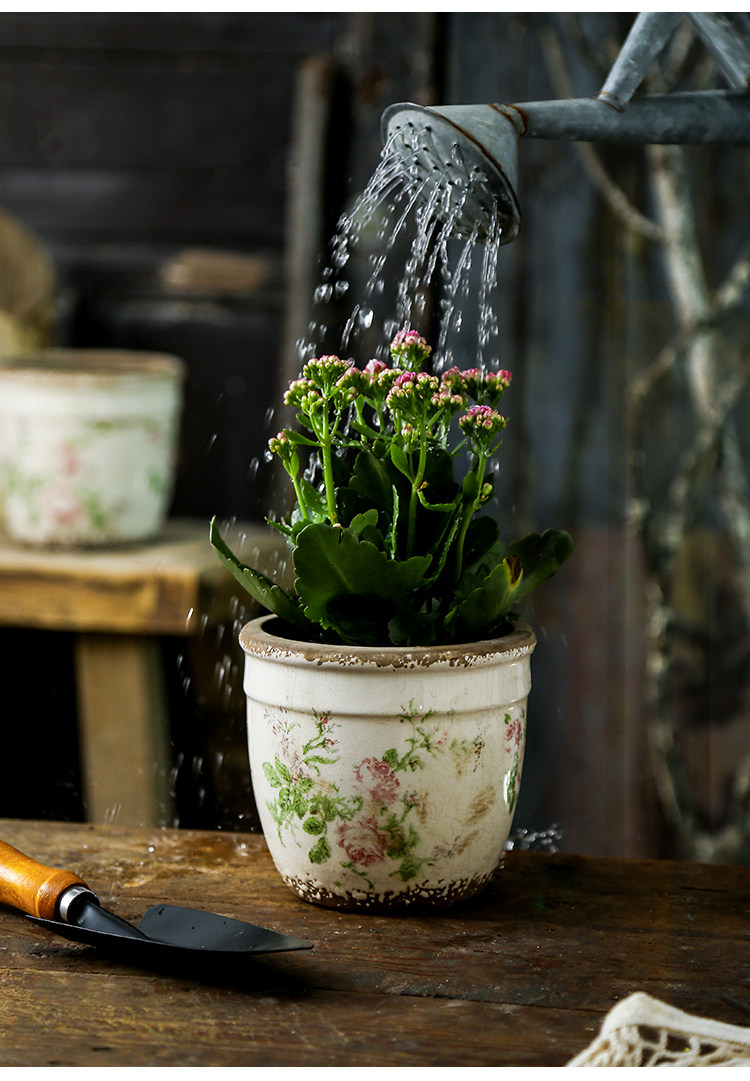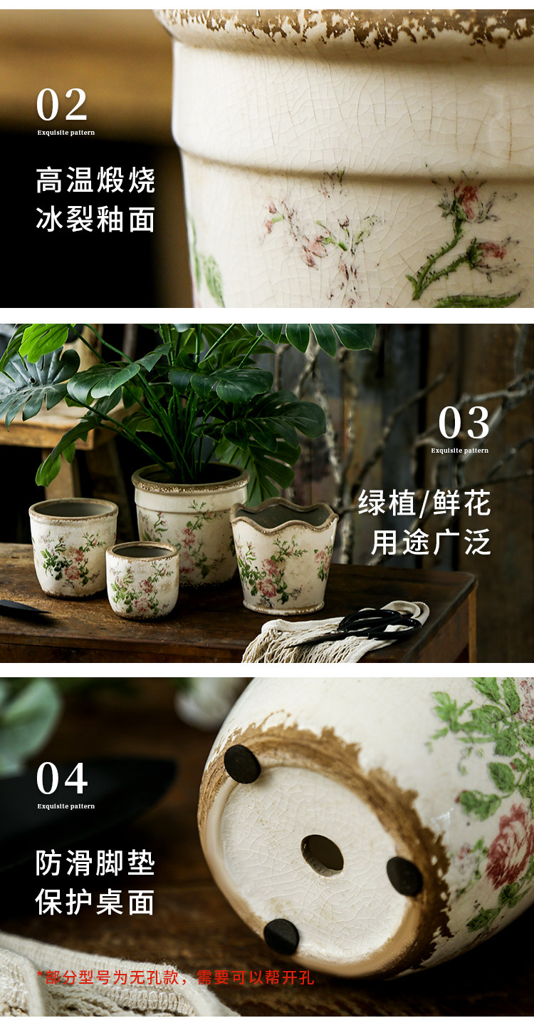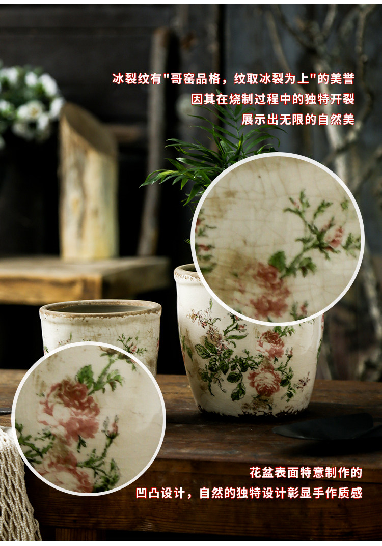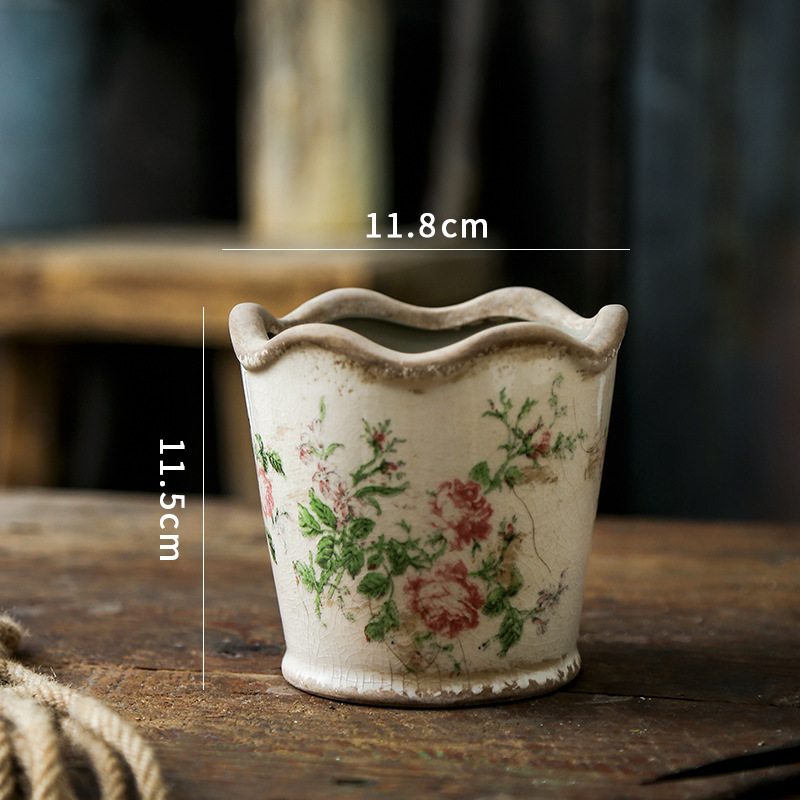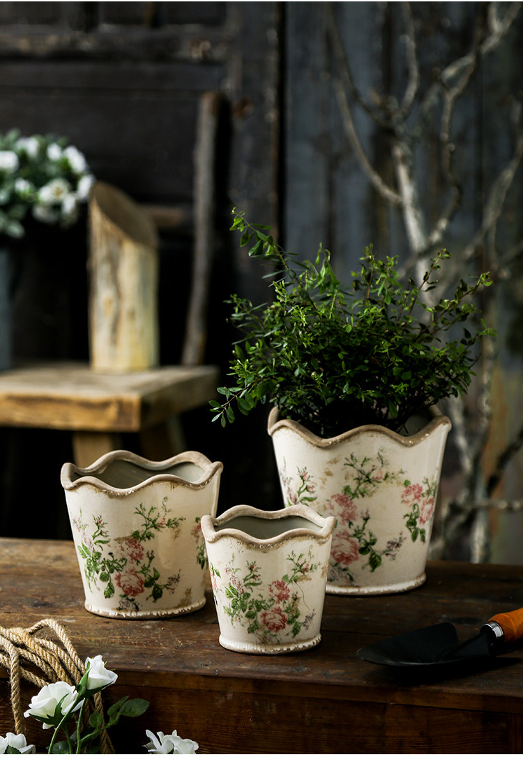 프랑스 복고풍 고민 핑크 장미 세라믹 화분 원예 꽃 녹색 심기 다육 북유럽 수경 도자기 장식