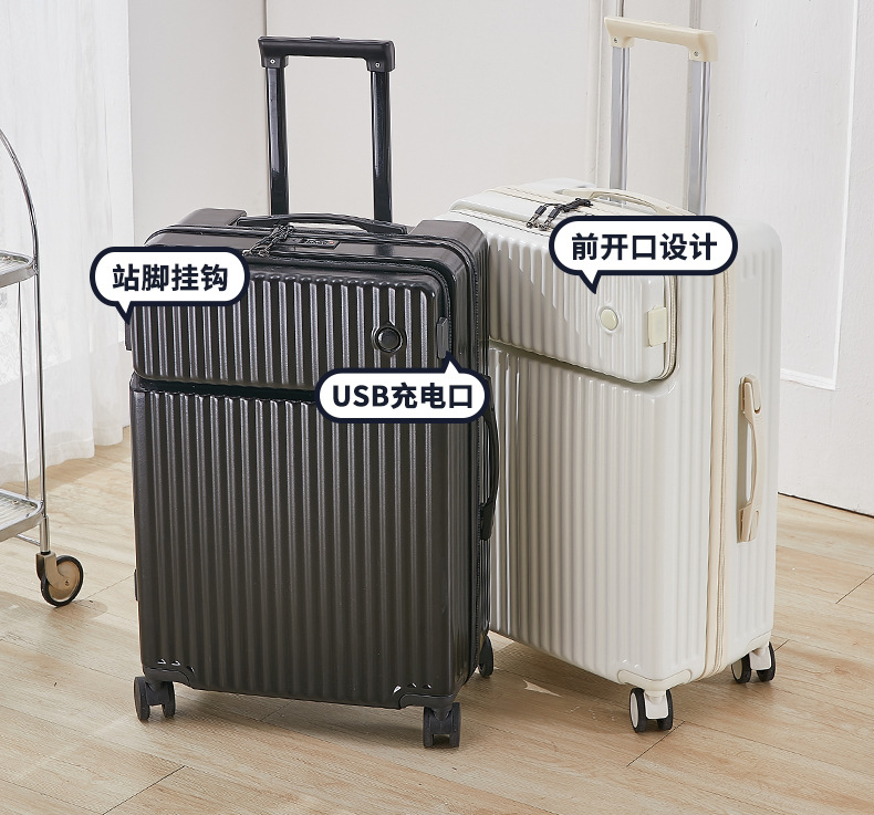 신제품 다기능 전면 개방형 충전식 여행가방, 여성용 심플 여행가방, 남성용 비밀번호 가방스토어 가기