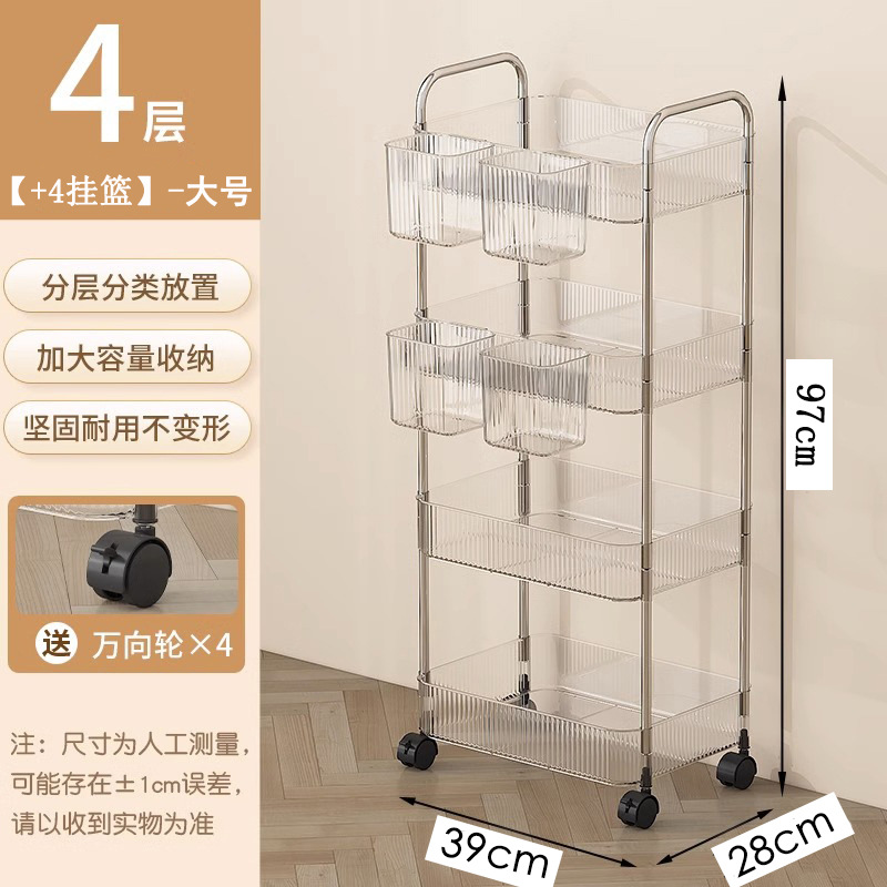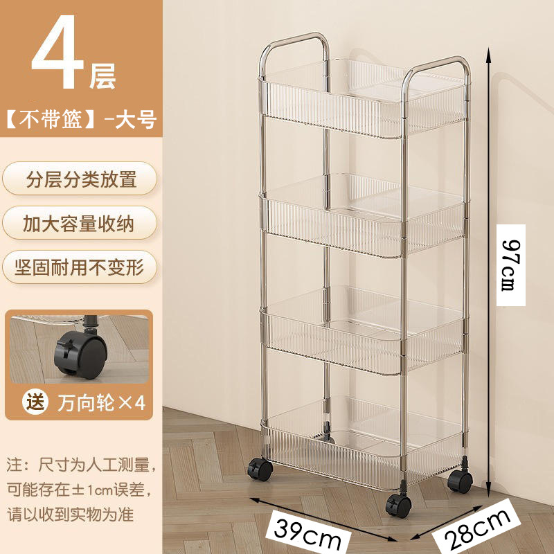가벼운 럭셔리 욕실 화장실 간격 스토리지 랙 인스 타 그램 스타일 투명 화장품 스토리지 랙 이동식 다층 카트