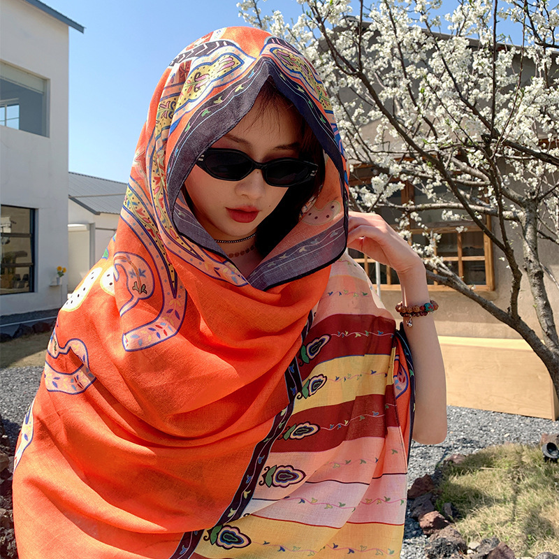 여름 새로운 스티칭면과 린넨 느낌 관광 자외선 차단제 비치 타올 사막 북서쪽 장식 숄 케이프를 착용