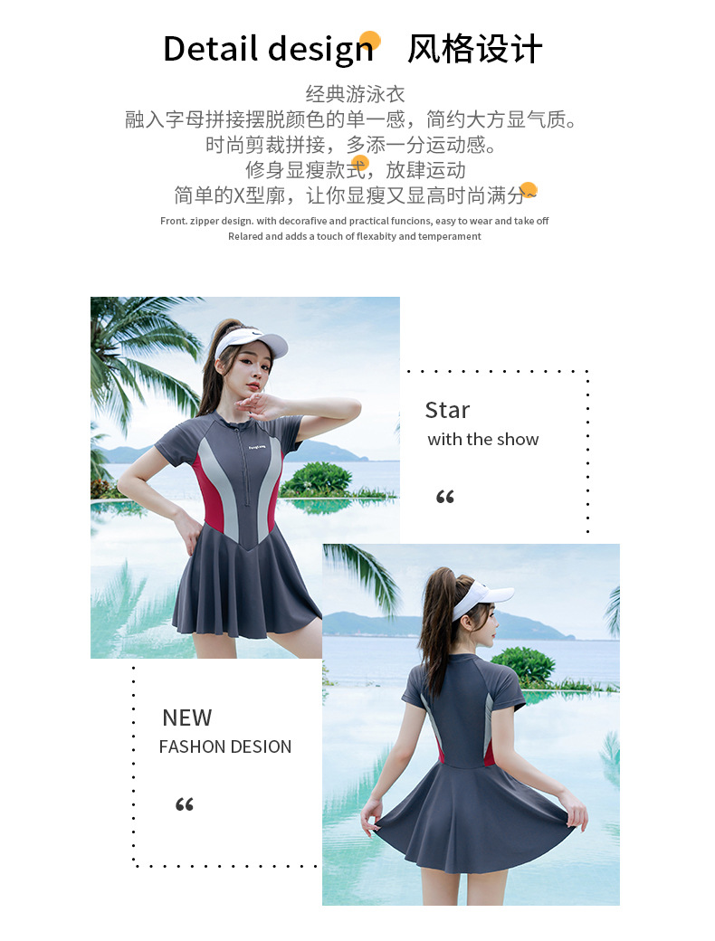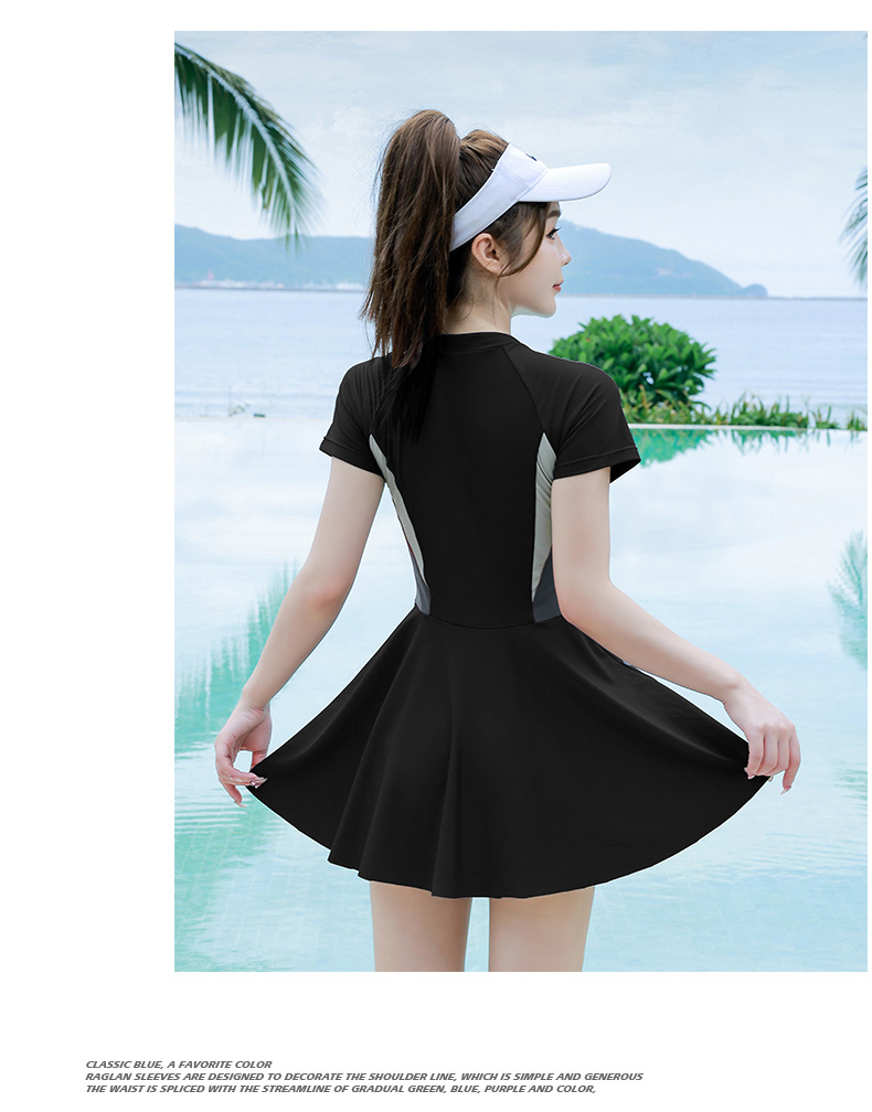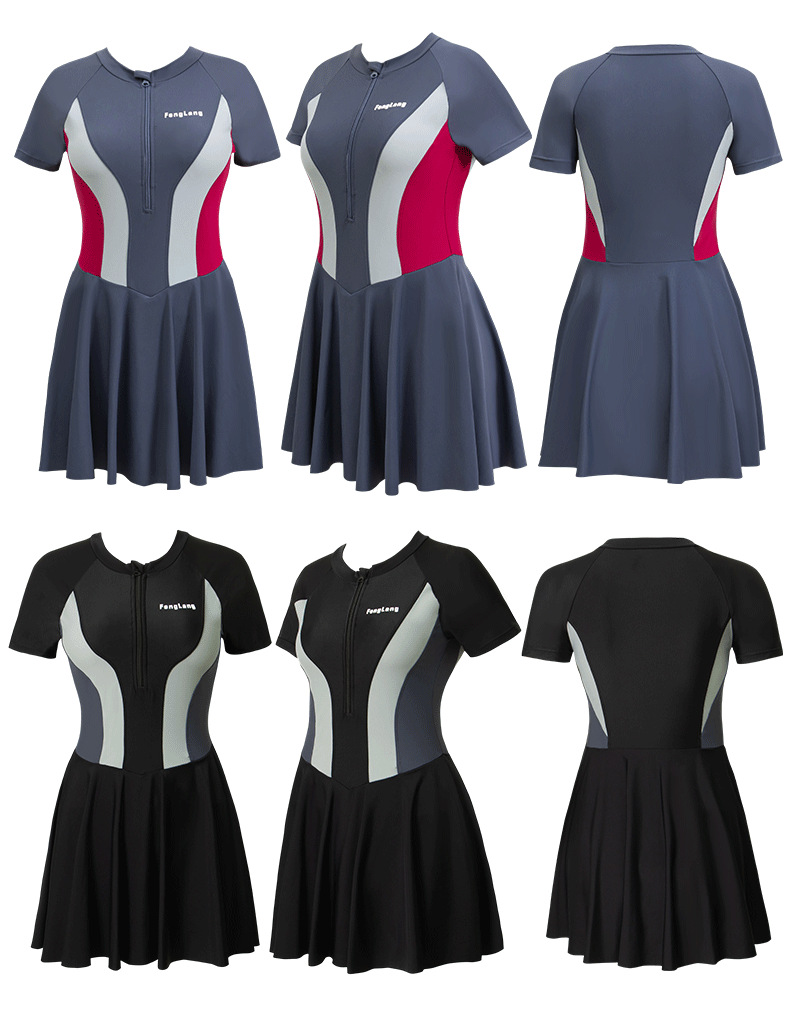 여성용 수영복 성인용 원피스 스커트형 수영복 단색 배색 스포츠 자외선 차단 수영 장비 트렌디한 몸매 보정