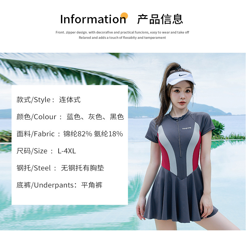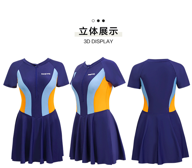 여성용 수영복 성인용 원피스 스커트형 수영복 단색 배색 스포츠 자외선 차단 수영 장비 트렌디한 몸매 보정스토어 가기