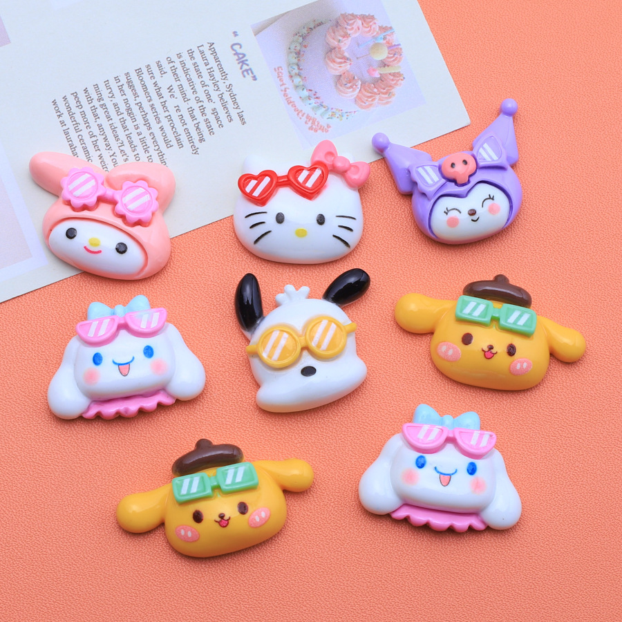 만화 동물 선글라스 Sanrio diy 수지 액세서리 수제 크림 접착제 머리핀 휴대폰 케이스 스티커