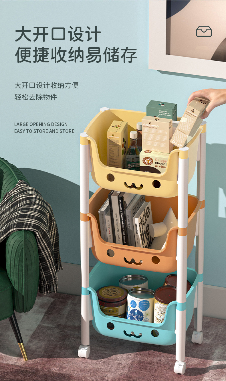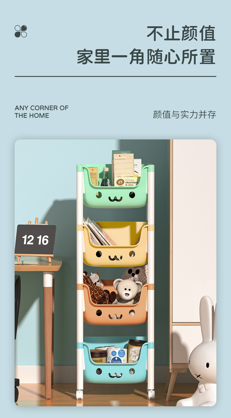 트롤리 보관 랙 어린이 책장 바닥 아기 제품 가정용 모바일 스낵 보관함 장난감 보관함스토어 가기