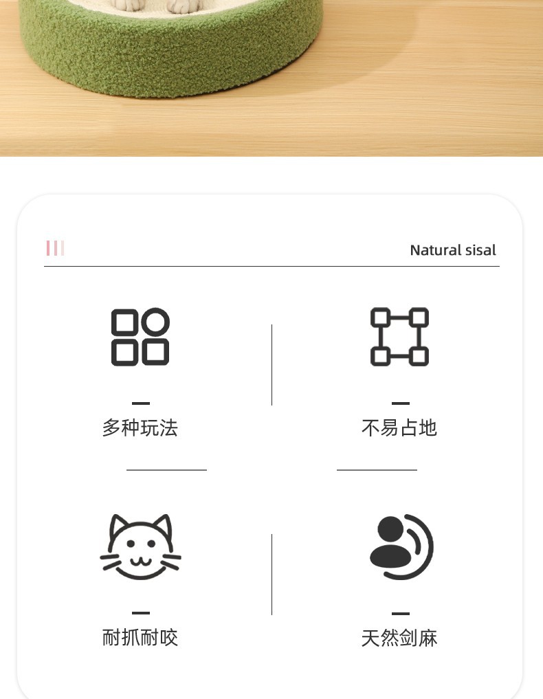사이잘삼 고양이 스크래치 보드 고양이 둥지 고양이 분지 통합 라운드 대형 고양이 발톱 분지 파편 없음 내마모성 고양이 장난감 발톱 그라인더