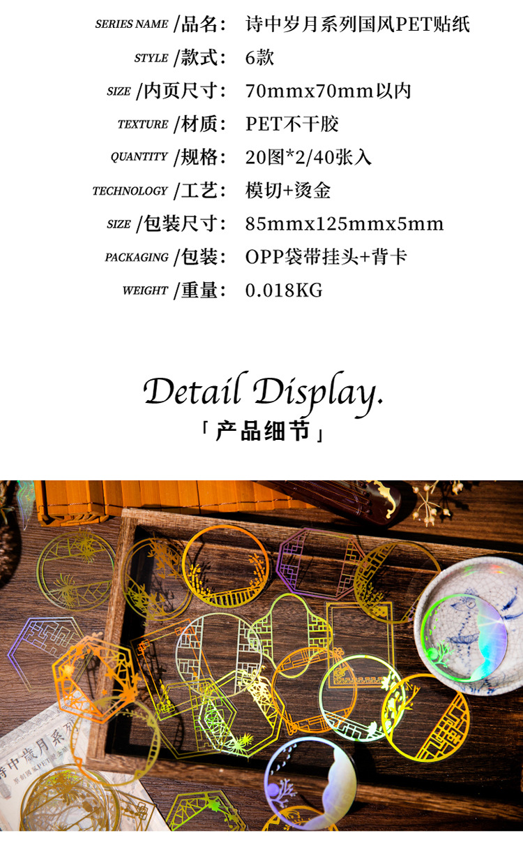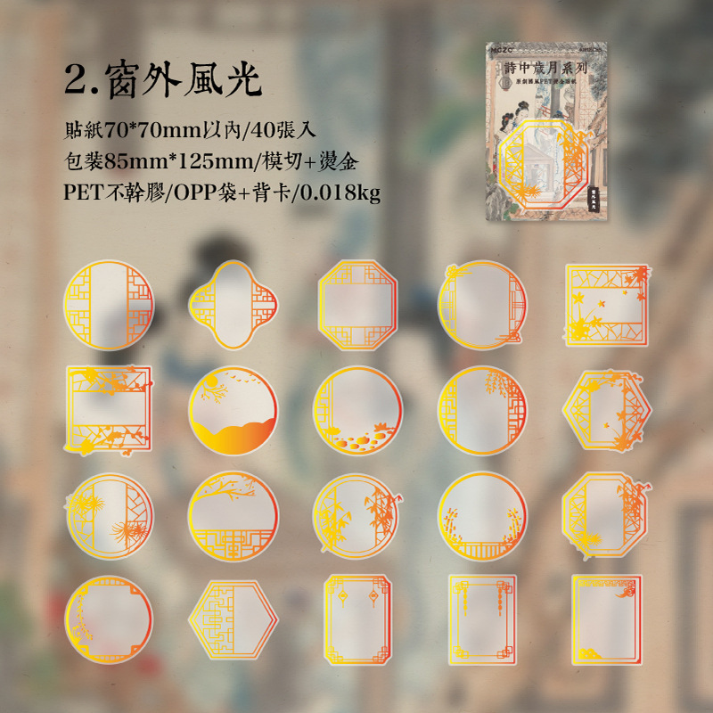황혼시 년 시리즈 PET 스티커 클래식 Guofeng 브론징 도어 및 창 팬 DIY Goo 카드 핸드 계정 콜라주