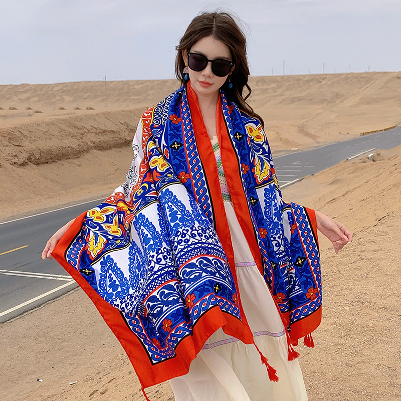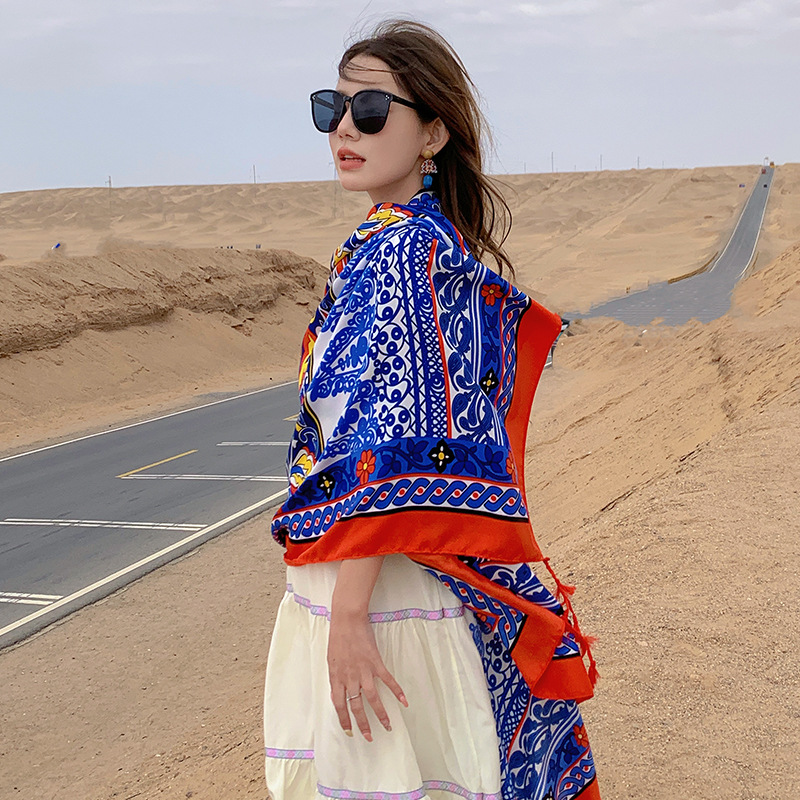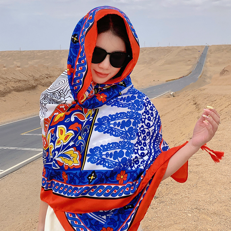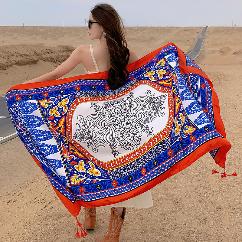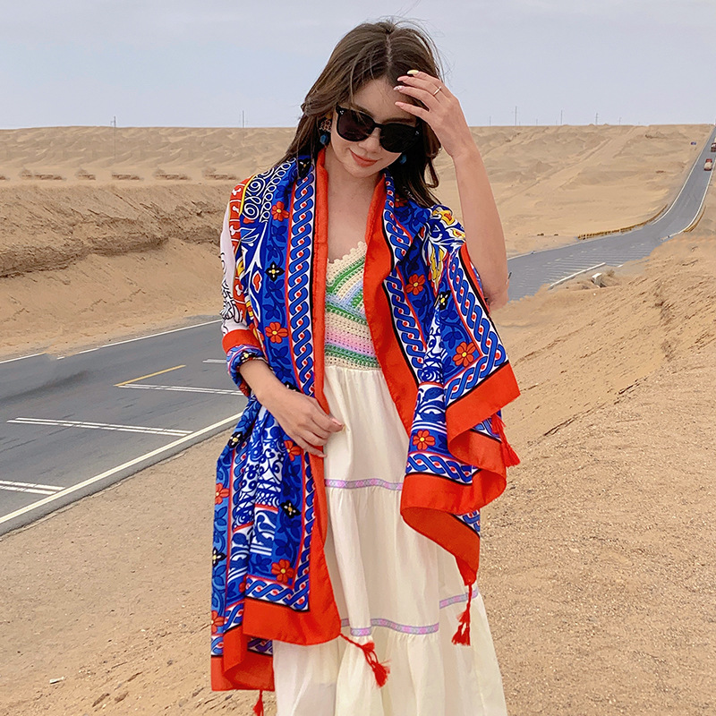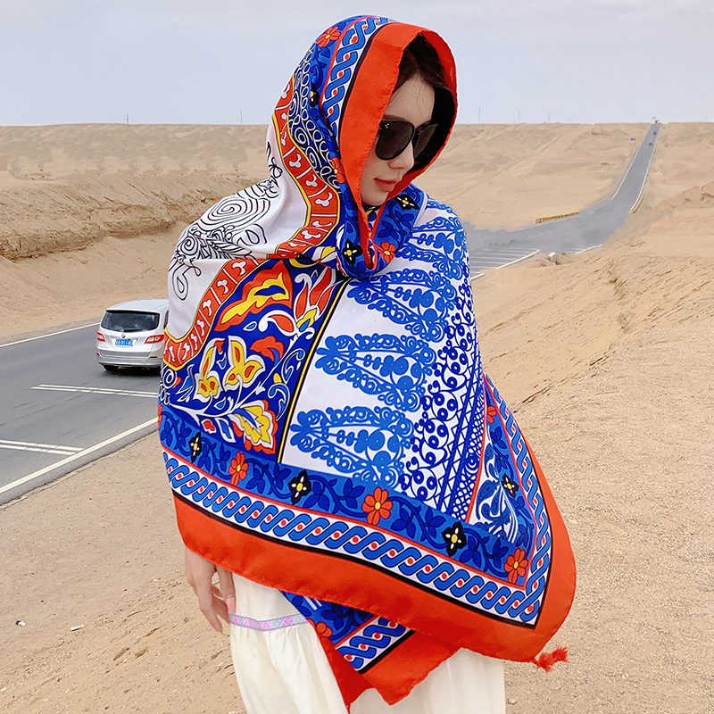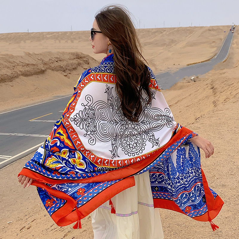 여름 레저 여행 망토 에스닉 스타일 사막 대형 망토 편안한 통기성 스카프 야외 패션 개인화 된 숄