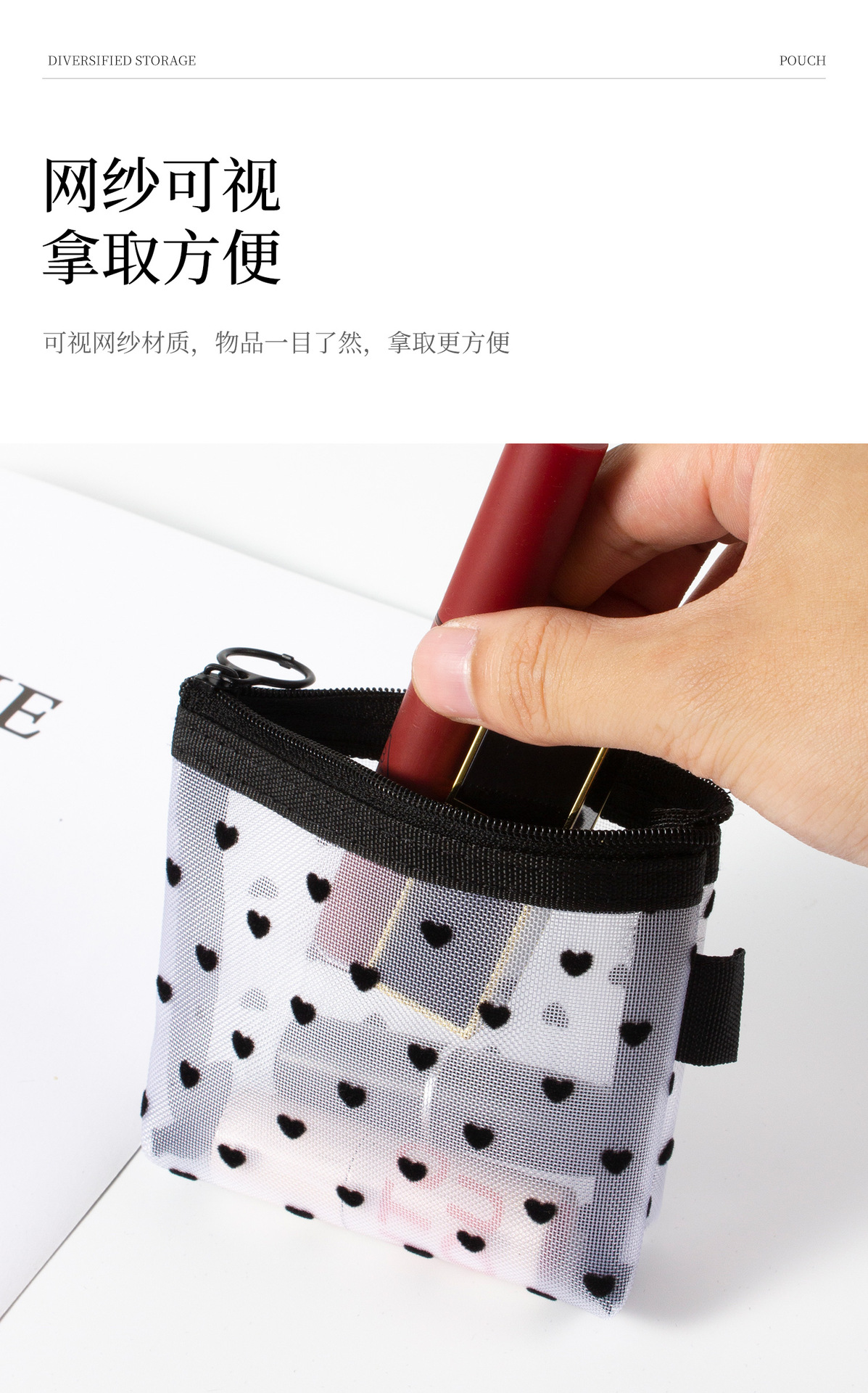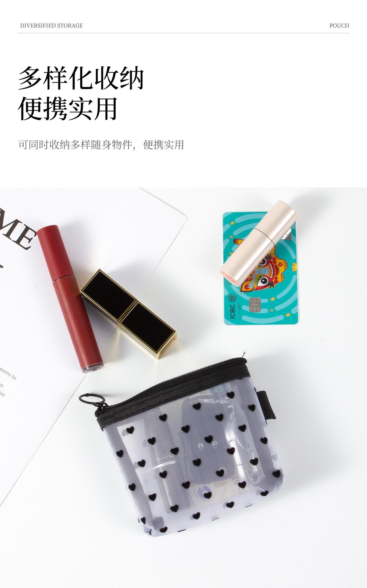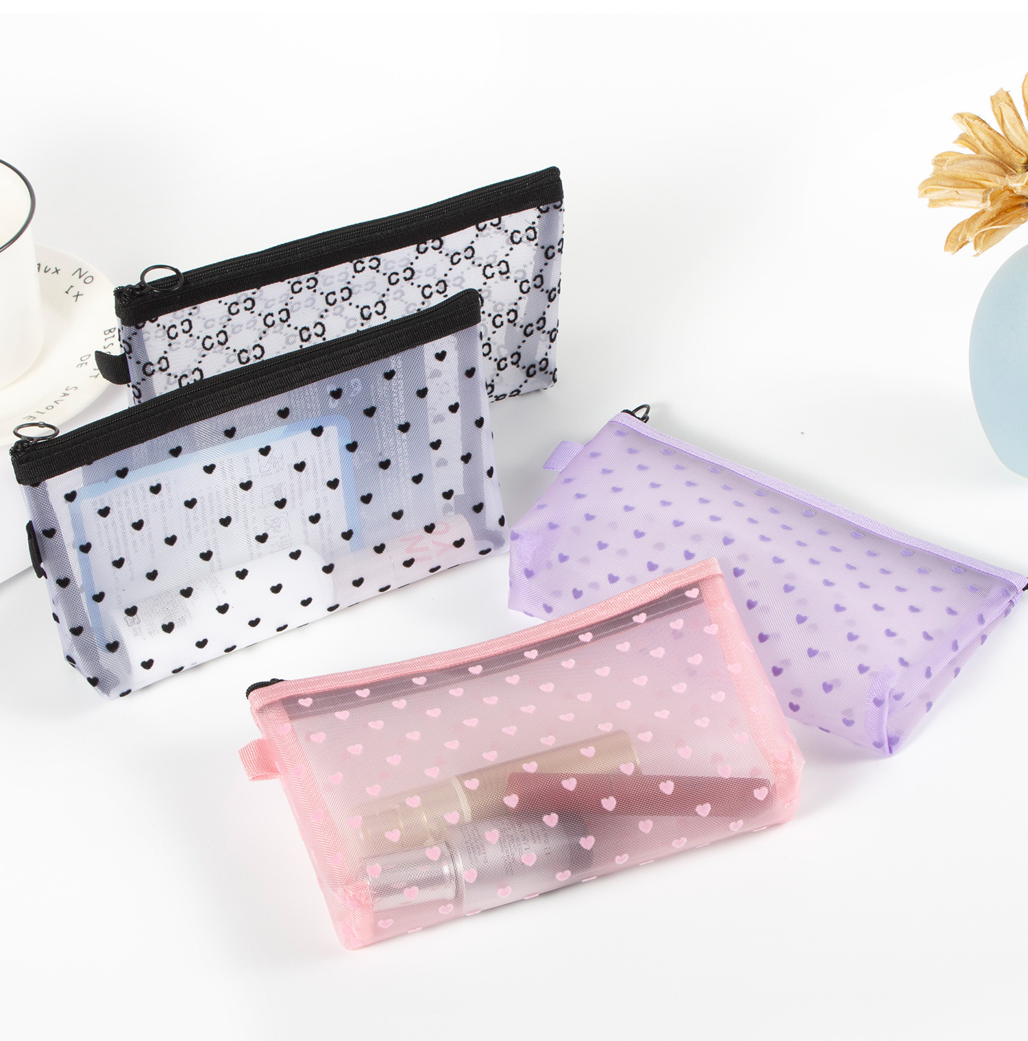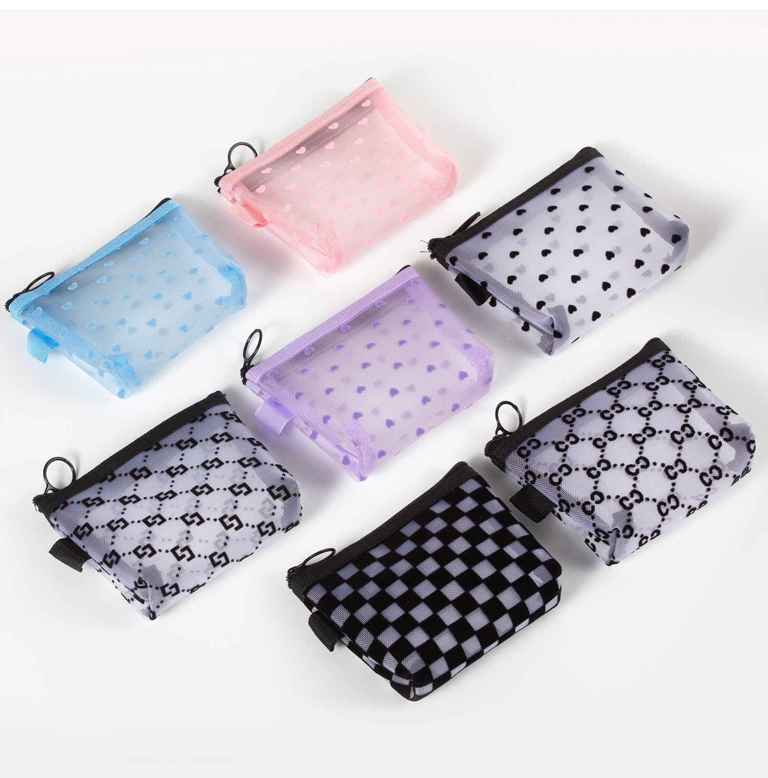 In 메쉬 화장품 가방 사랑 보관 가방 투명 휴대용 여행 보관 가방 몰려 동전 가방 카드 가방