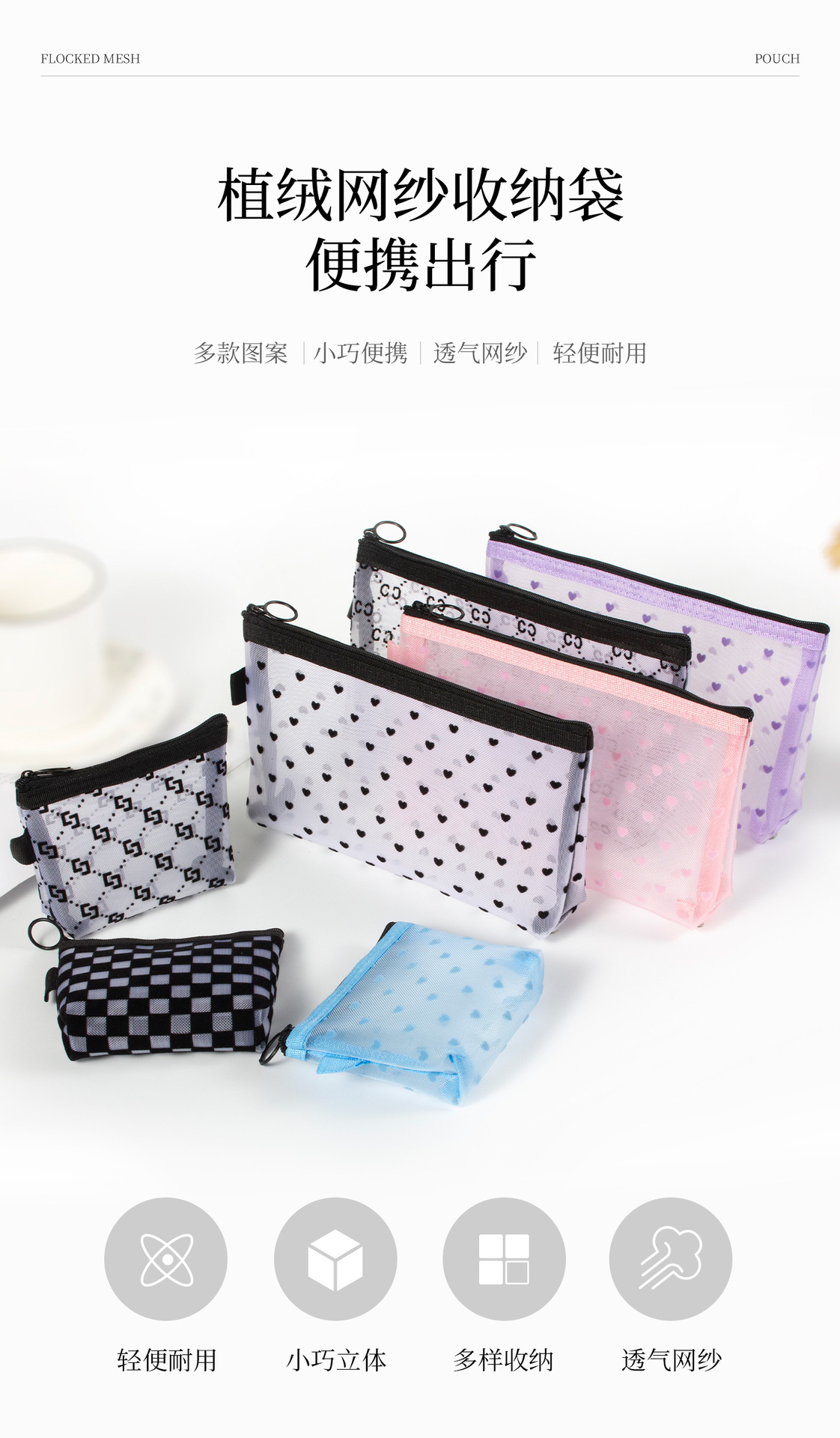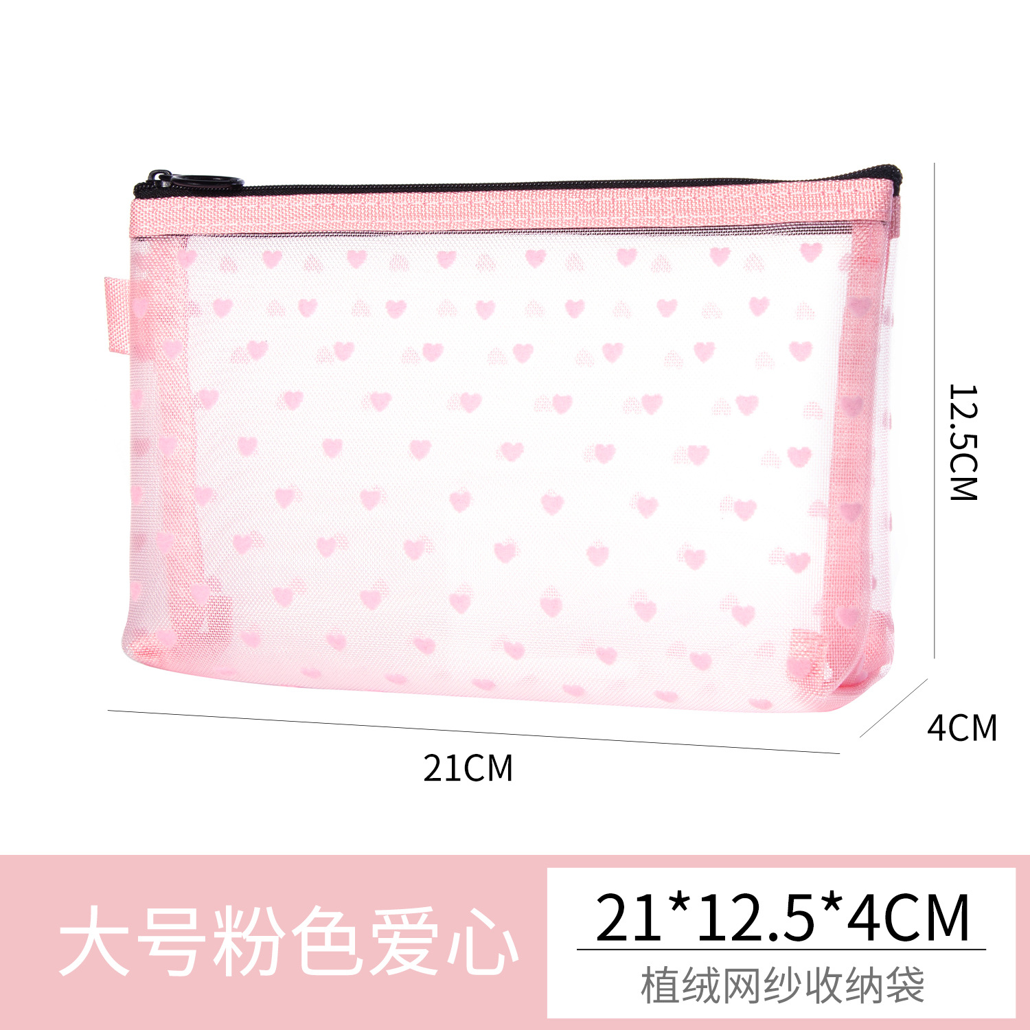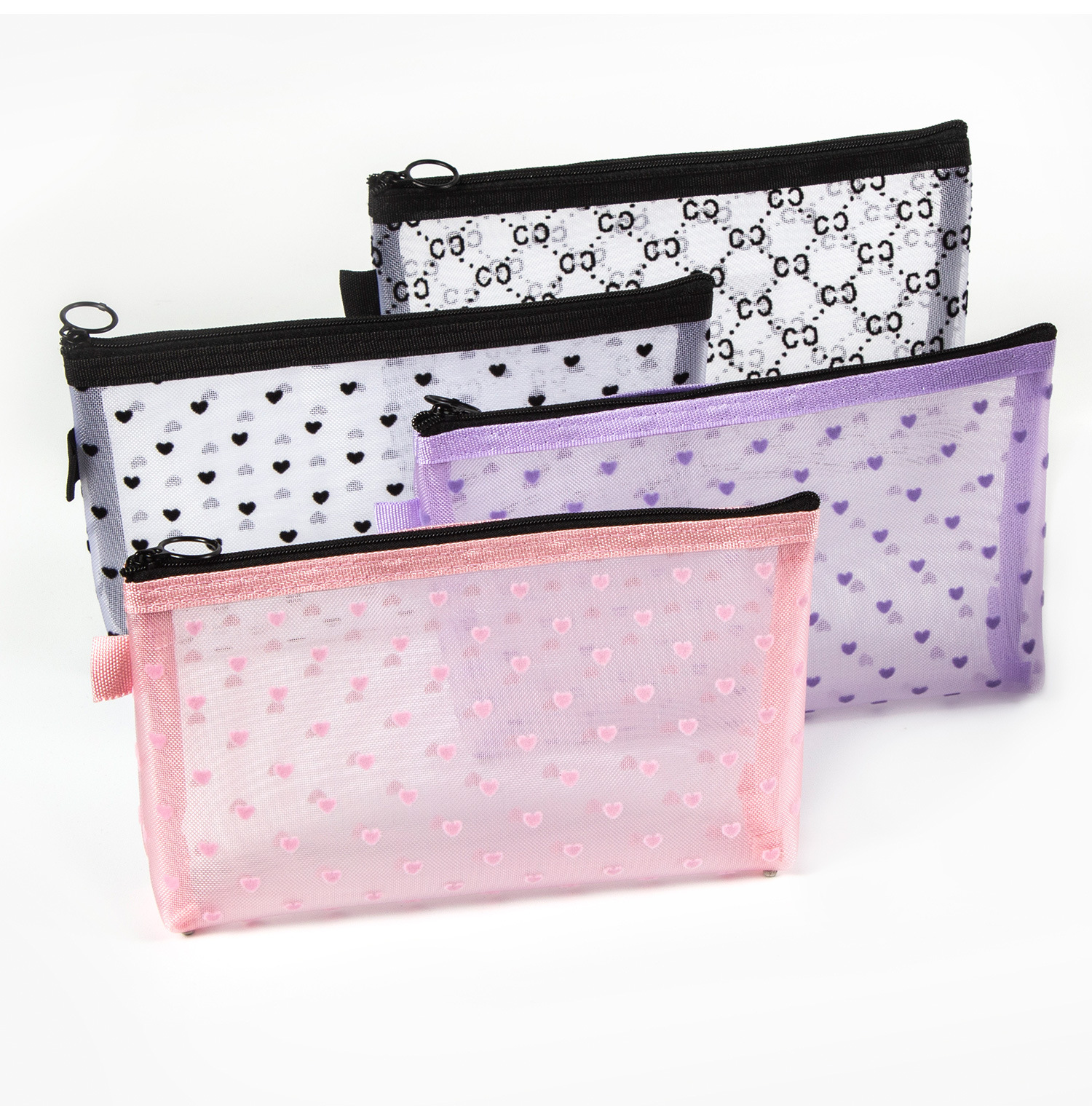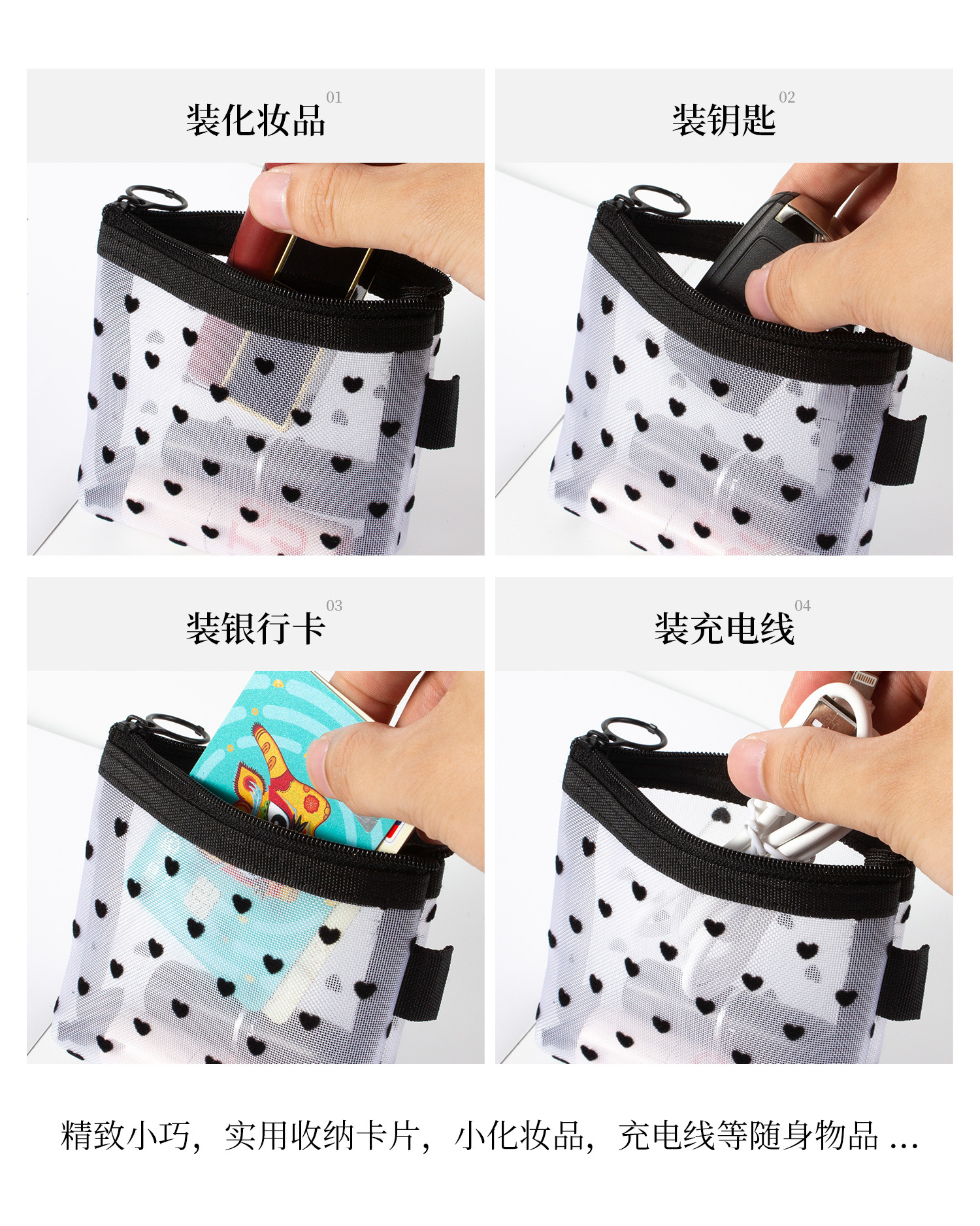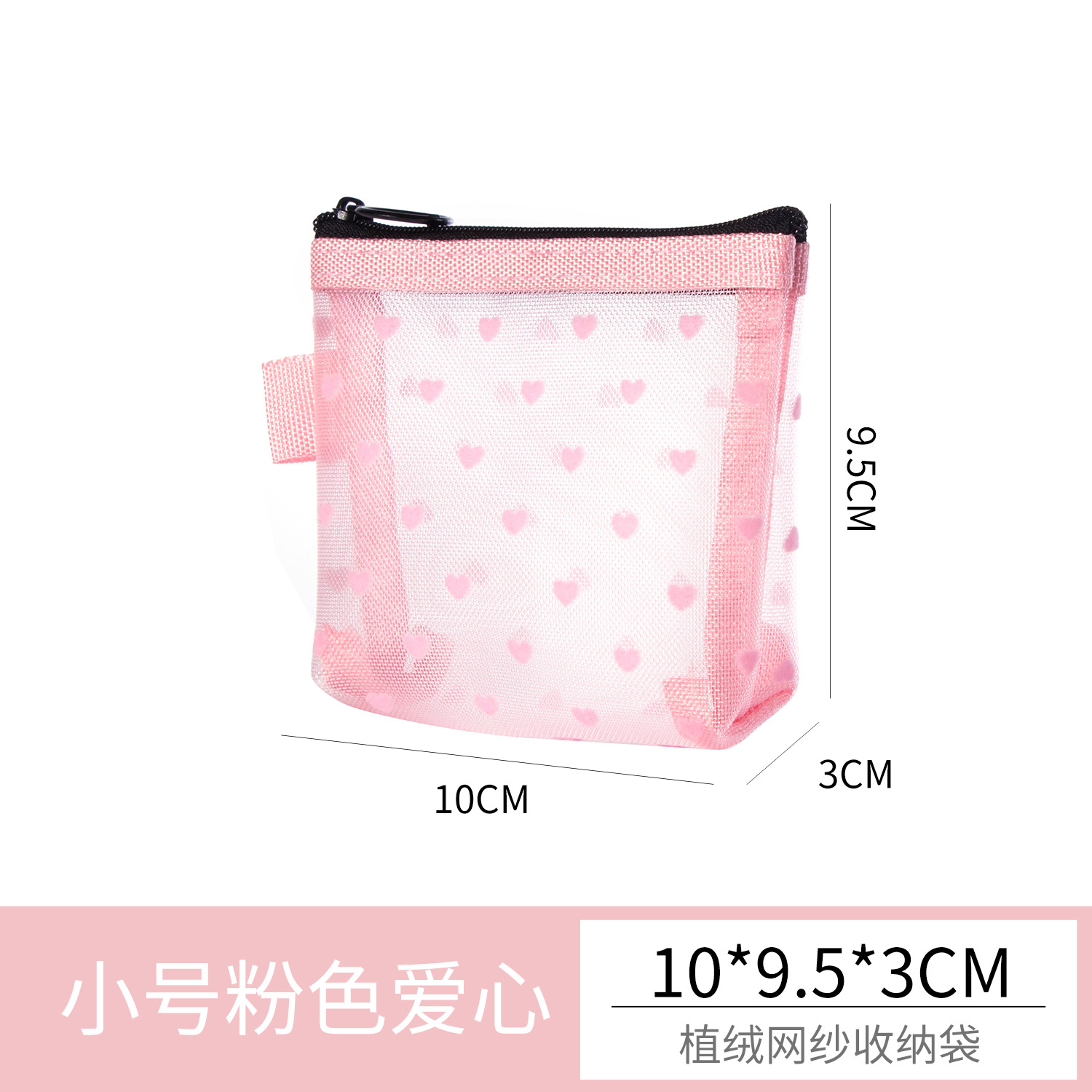 In 메쉬 화장품 가방 사랑 보관 가방 투명 휴대용 여행 보관 가방 몰려 동전 가방 카드 가방