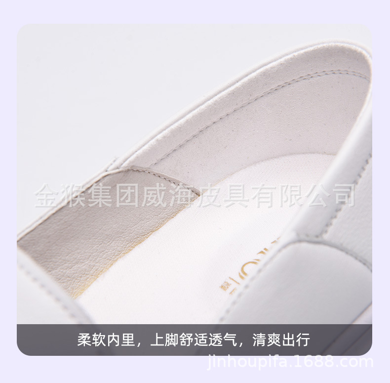 황금 원숭이 가죽 신발 여성용 2023 여름 새로운 정품 가죽 흰색 증가 부드러운 바닥 부드러운 표면 미끄럼 방지 통기성 편안한 간호사 신발스토어 가기