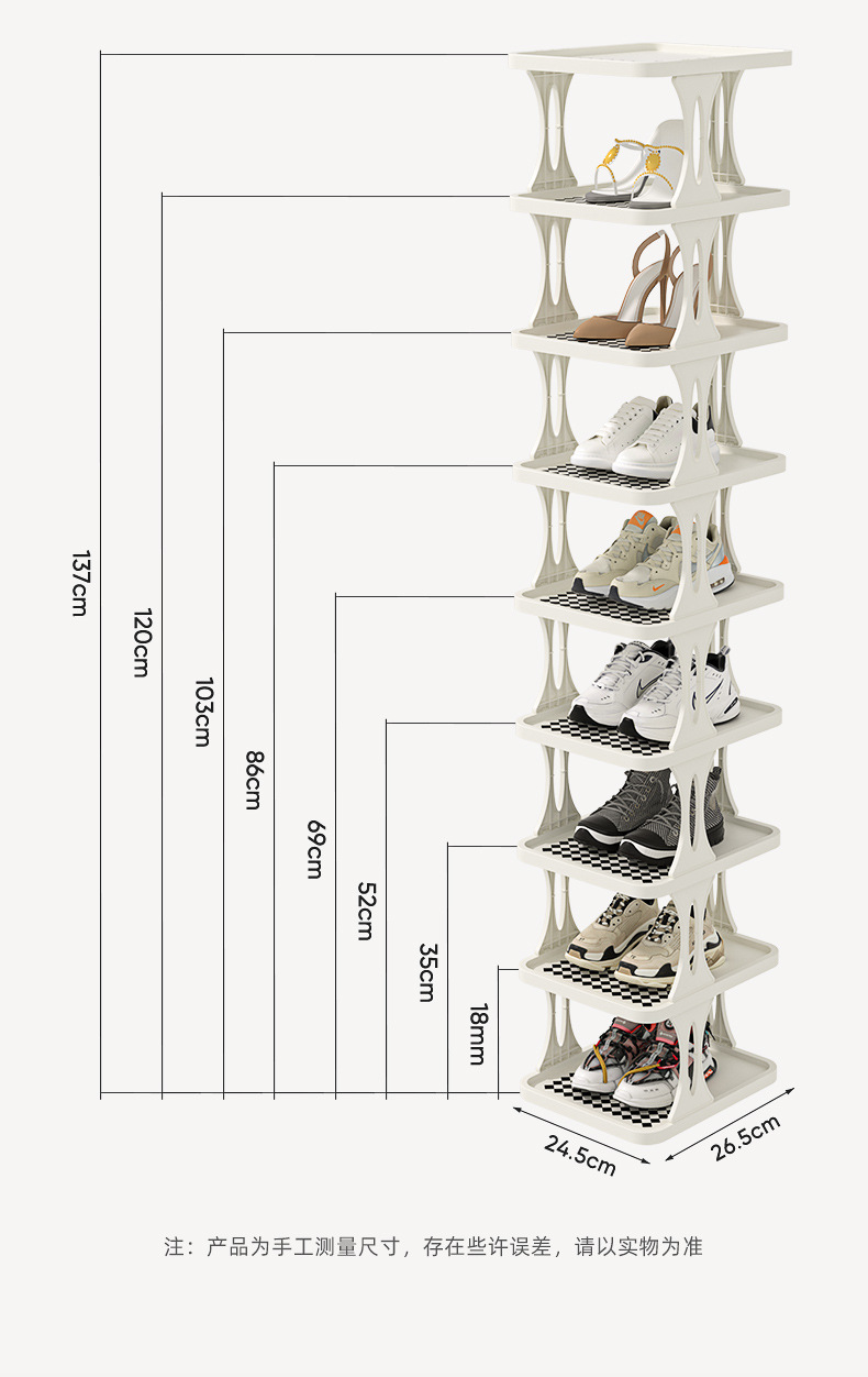 • 쉐이크 방지 후크가있는 체스 판 조합 신발 랙 (8 층)
