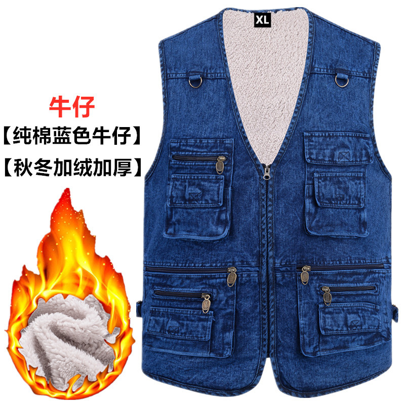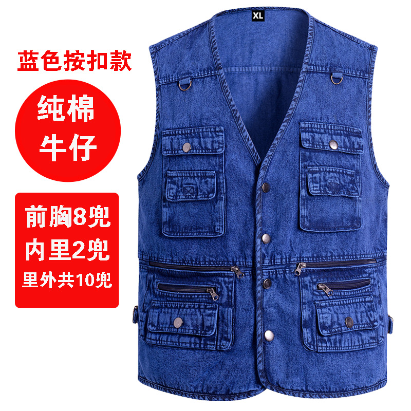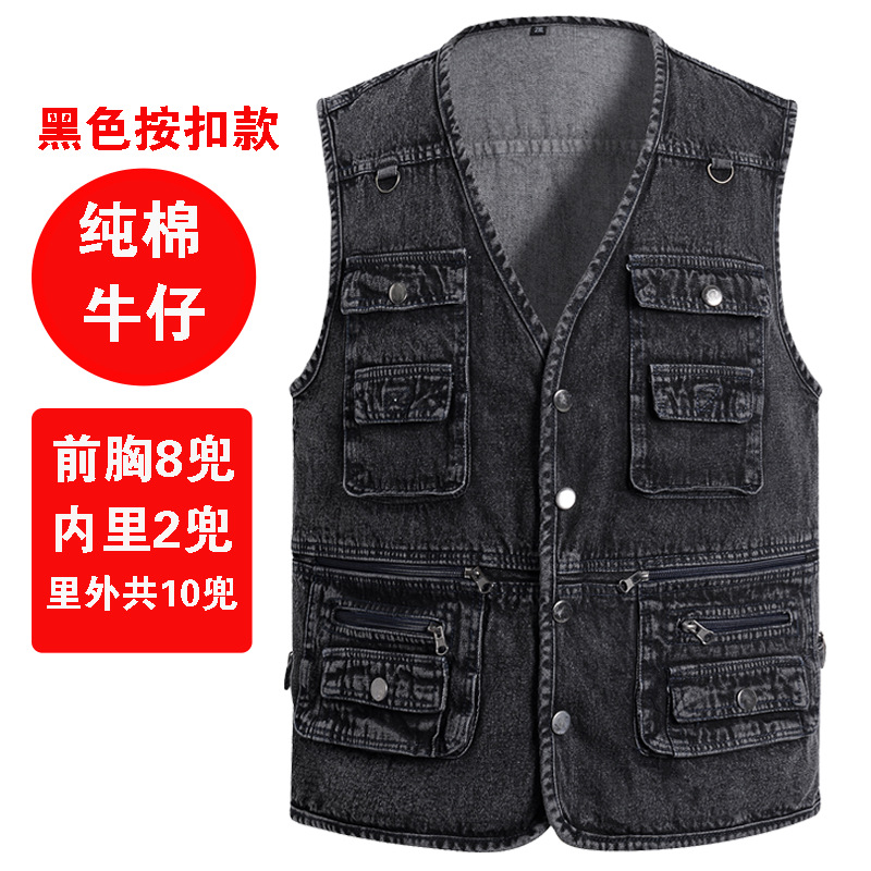 봄과 가을 검은 면 데님 조끼 남자의 멀티 포켓 조끼 조끼 멀티 포켓 플러스 대형 7XL 도매