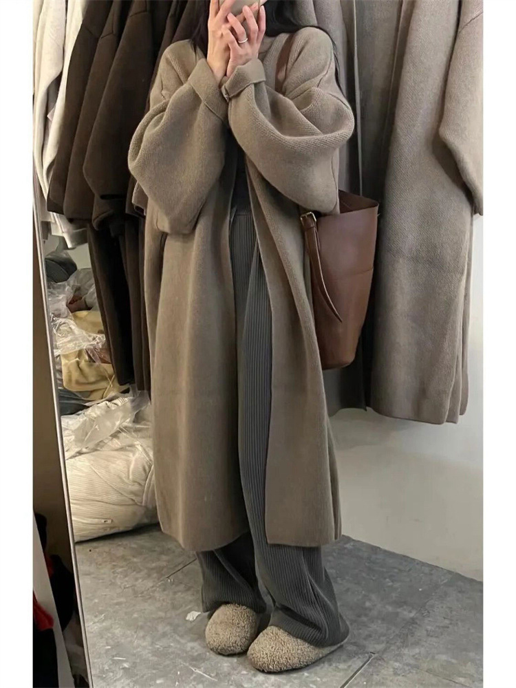 느슨한 두꺼운 양면 니트 카디건 코트 여자의 2023 가을과 겨울 새로운 플러스 사이즈 게으른 스타일 스웨터 코트의 한국어 버전