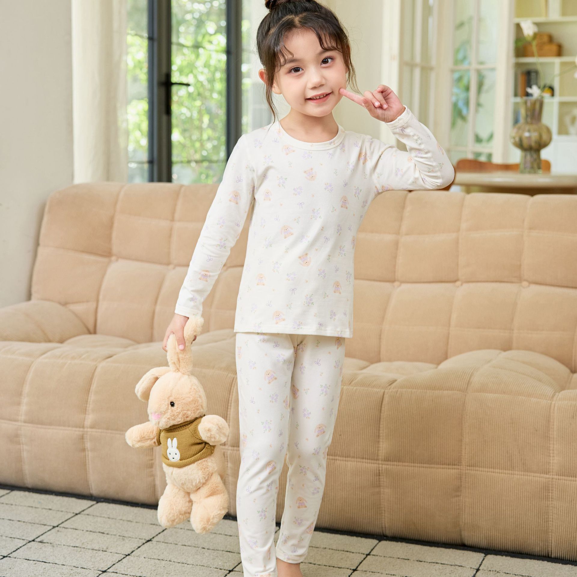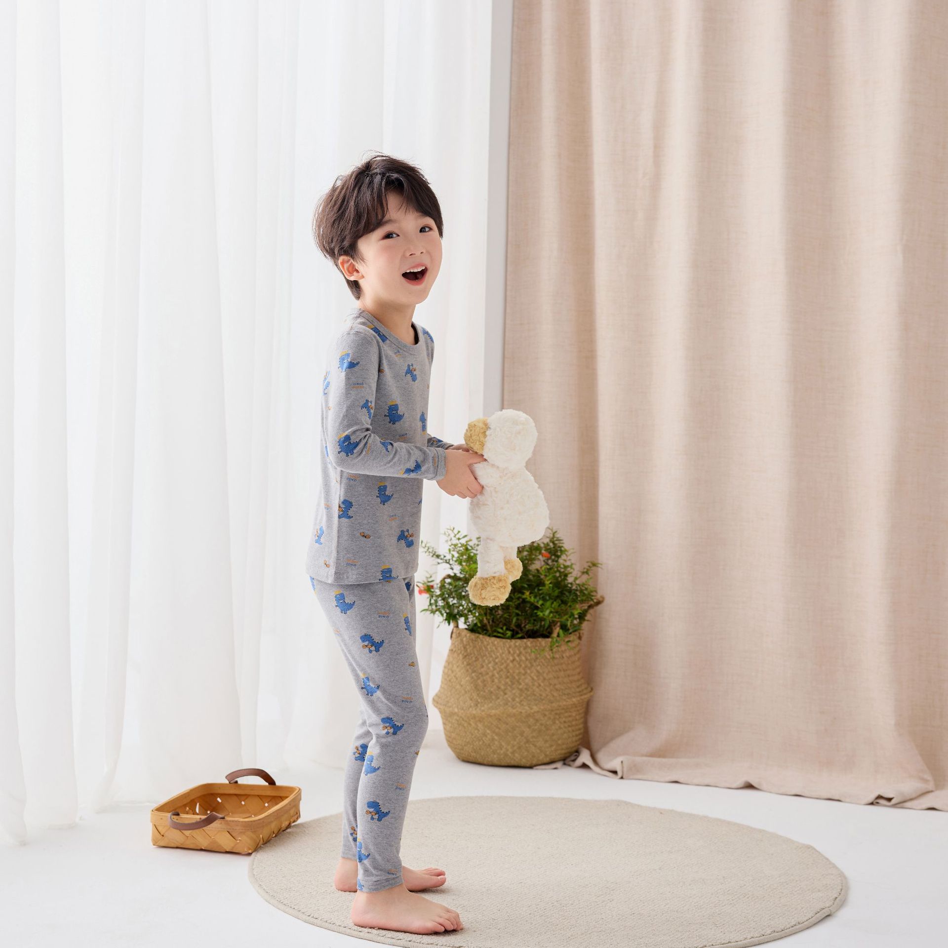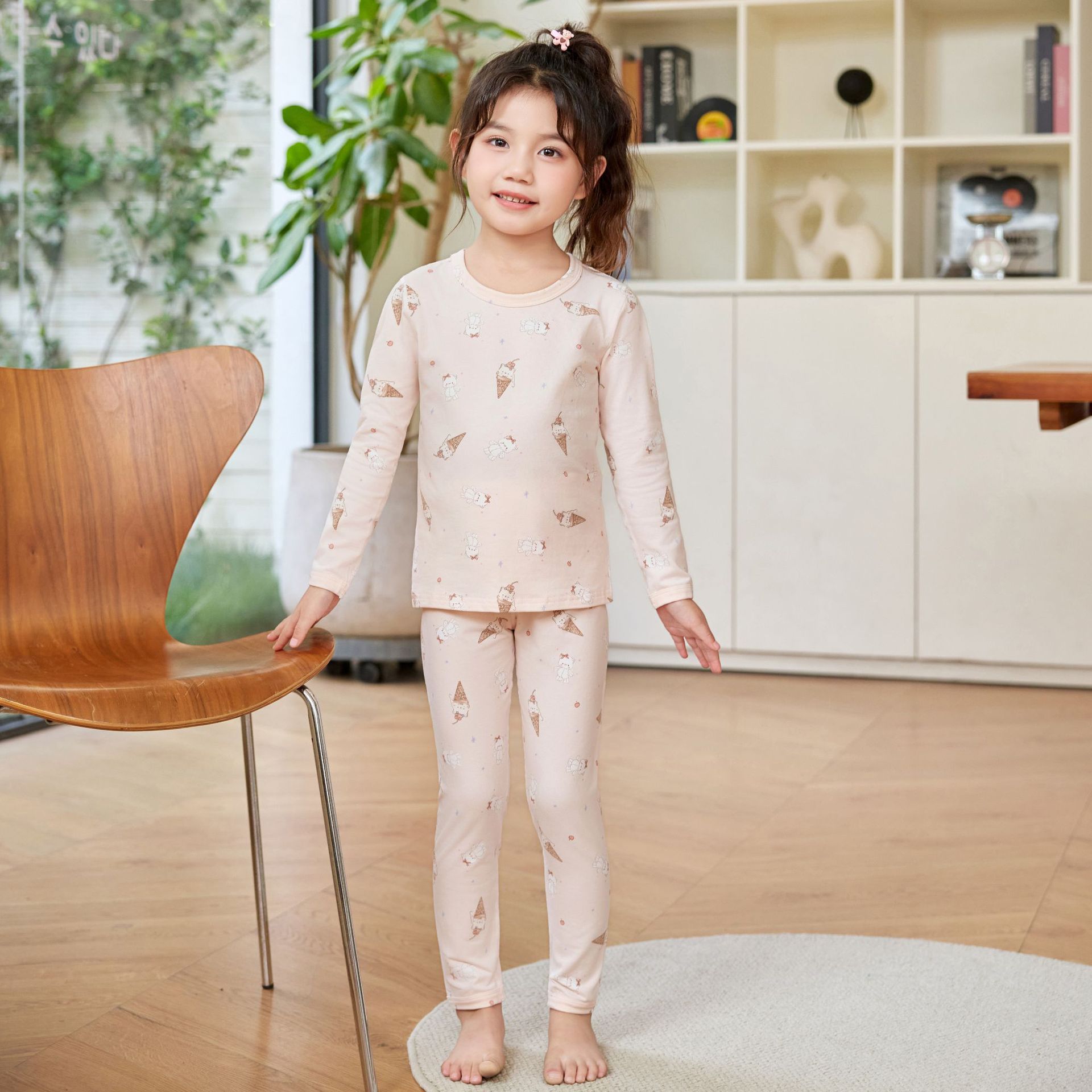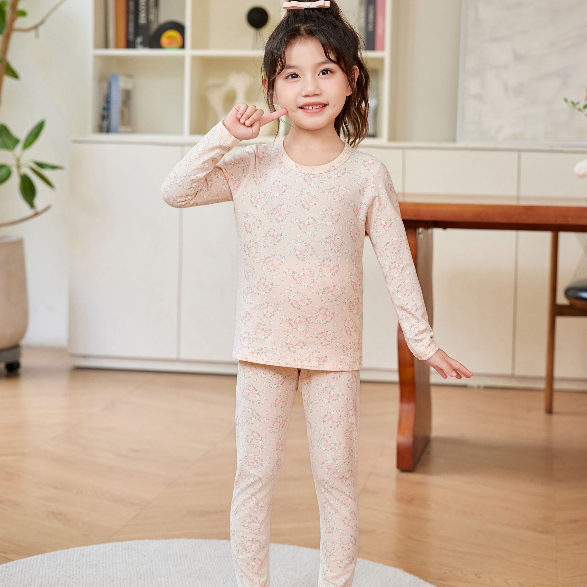 어린이 홈웨어 한국 스타일 무봉제 기모 라이크라 면 만화 캐릭터 가을옷 세트 따뜻한 속옷 귀여운 스타일스토어 가기