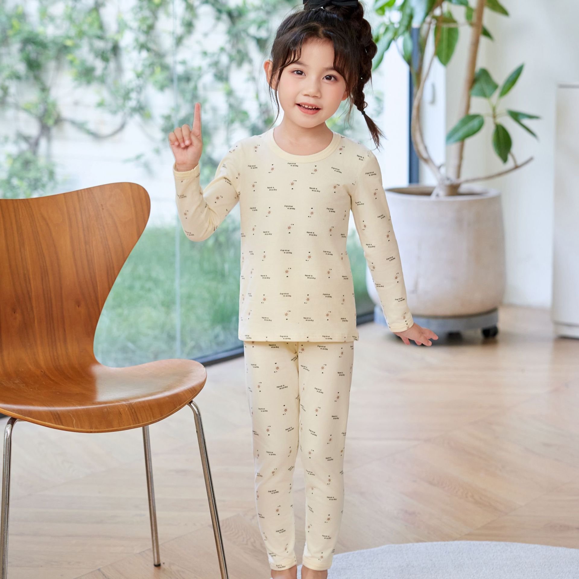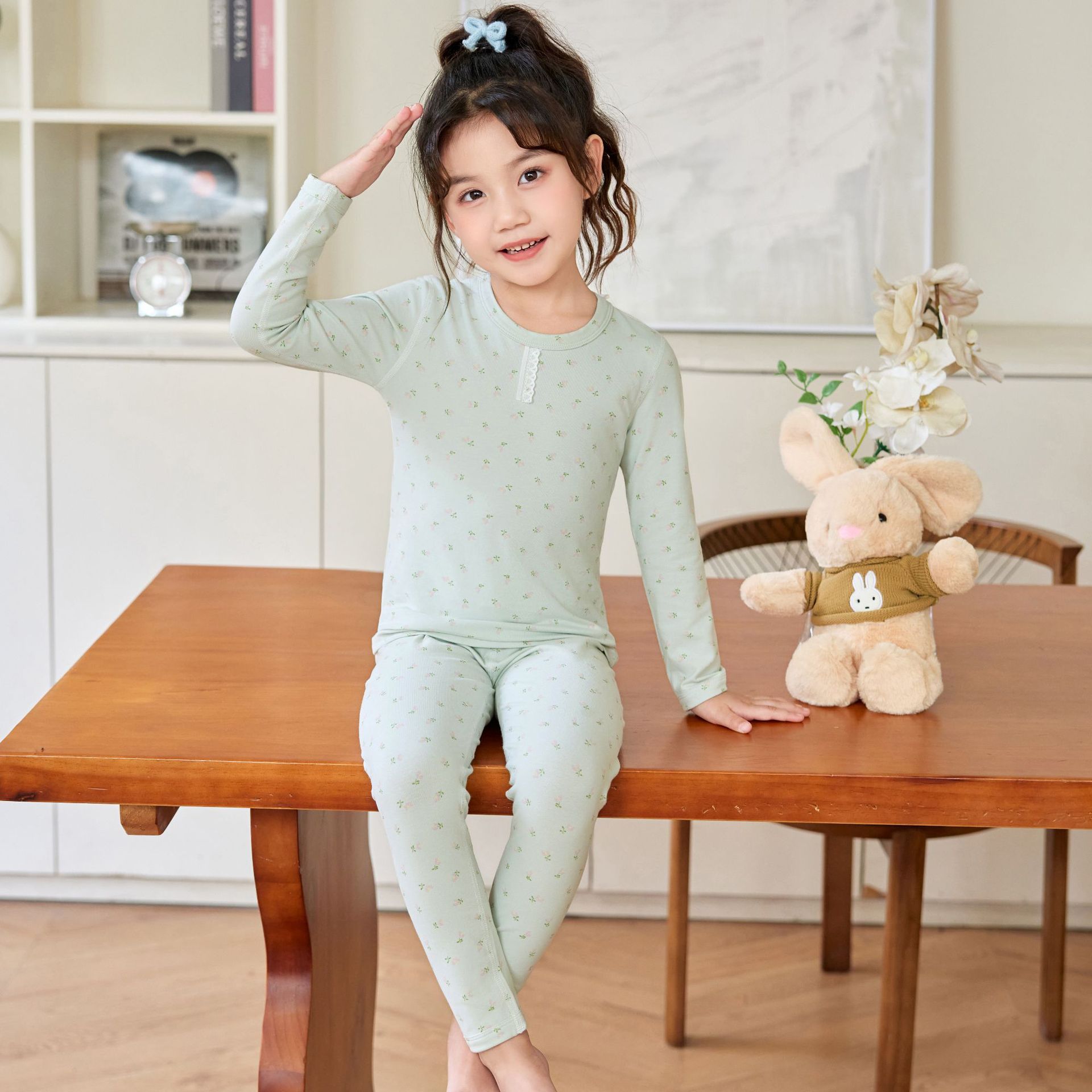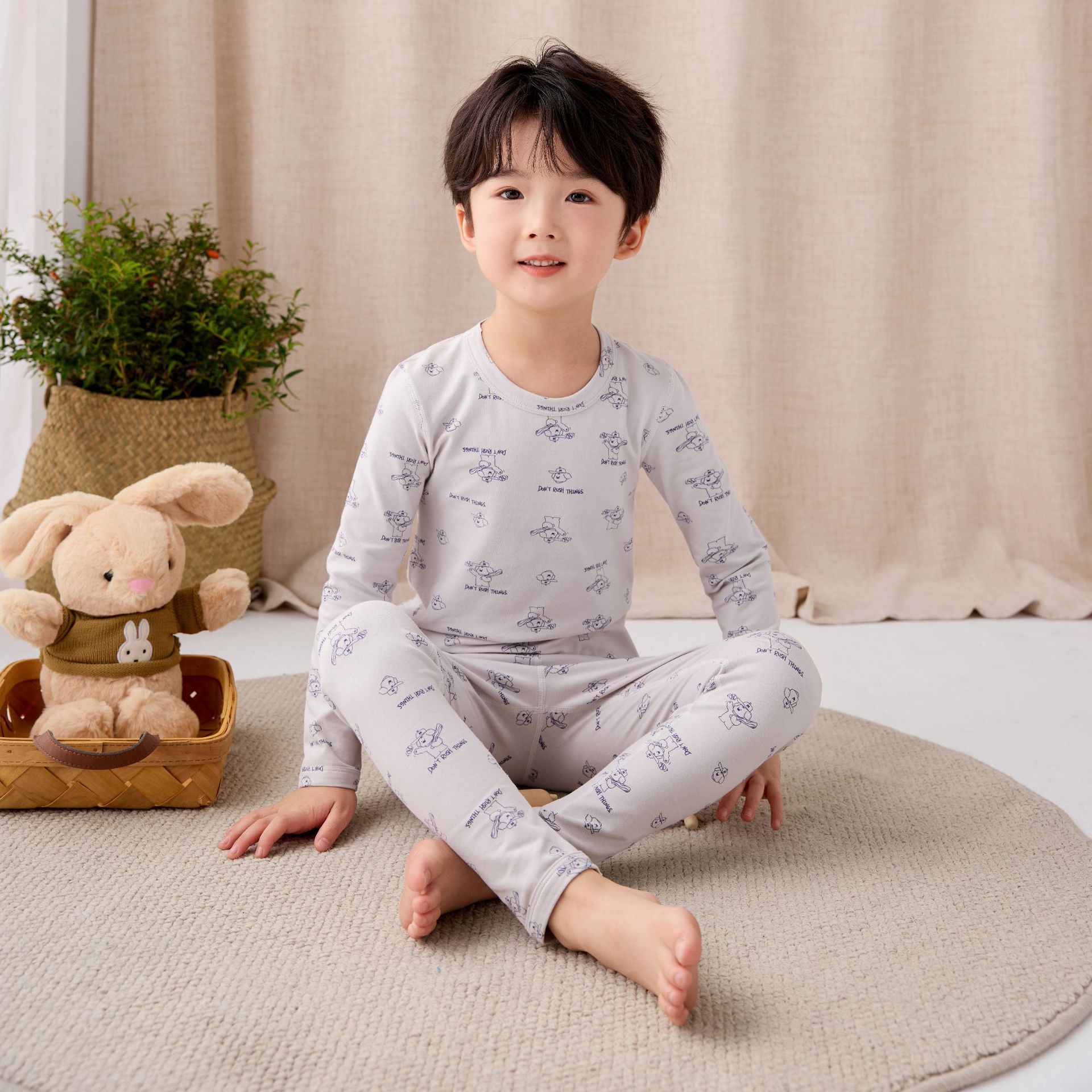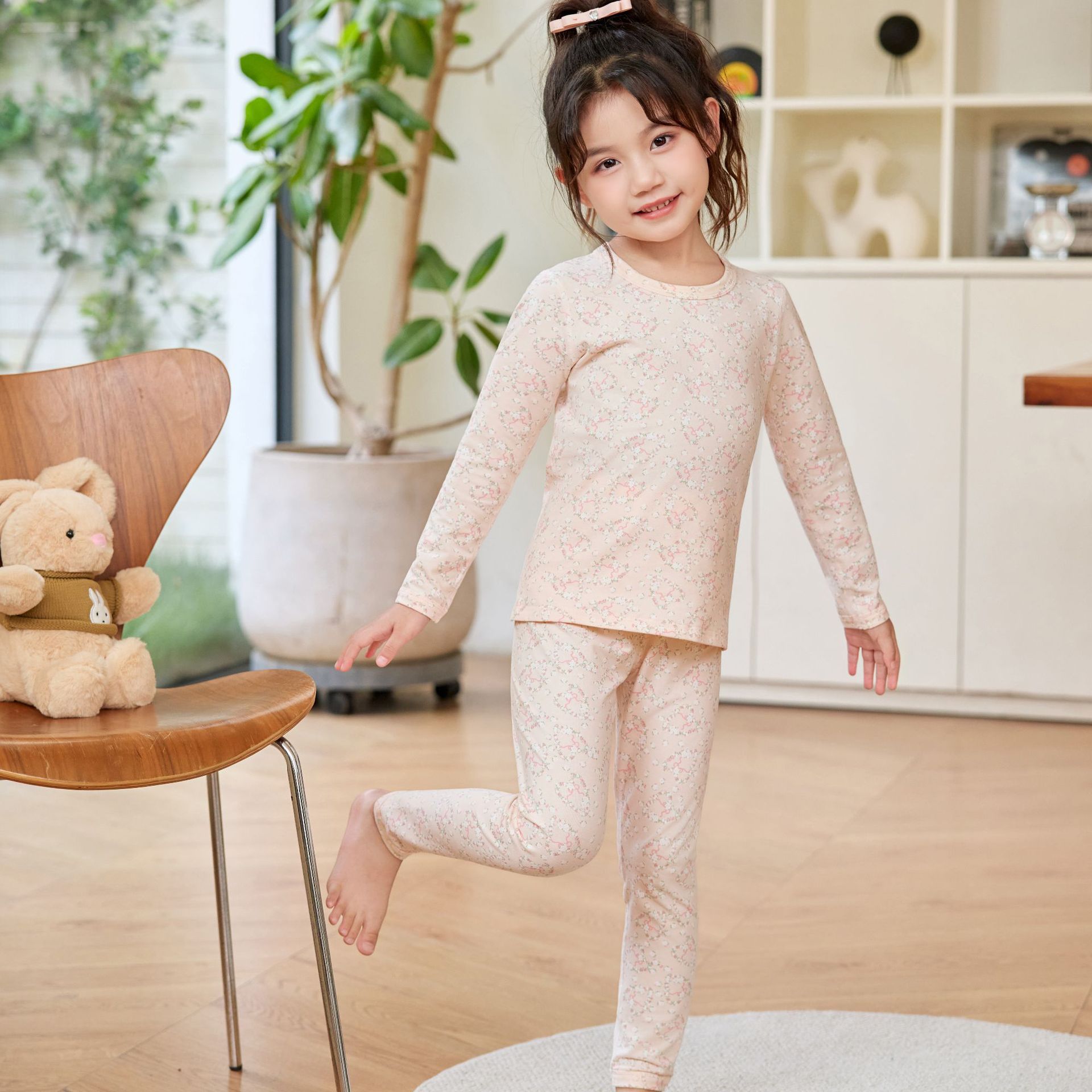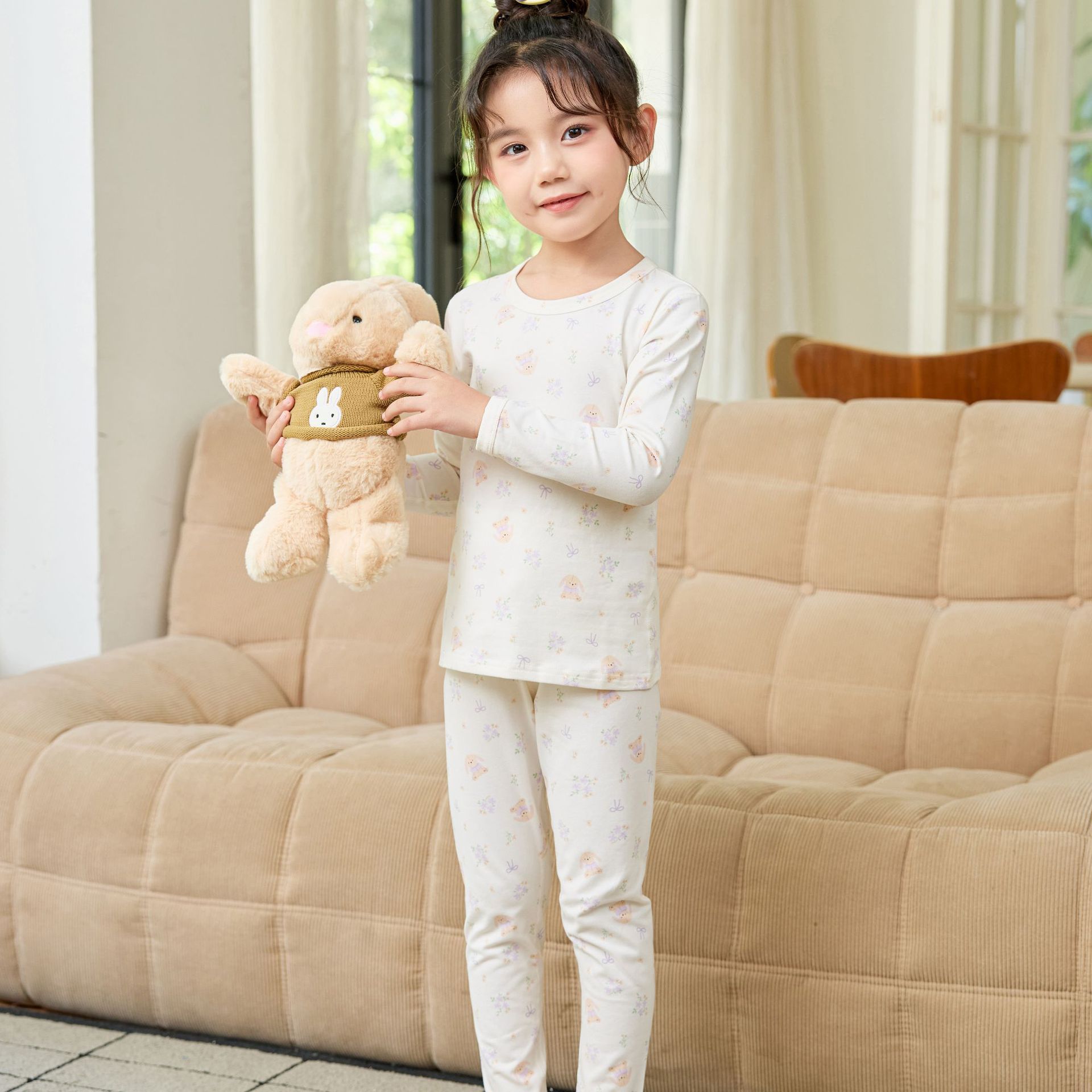 어린이 홈웨어 한국 스타일 무봉제 기모 라이크라 면 만화 캐릭터 가을옷 세트 따뜻한 속옷 귀여운 스타일스토어 가기